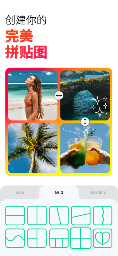 最简单的图片拼贴应用程序!从大量时尚的模板设计和照片拼贴风格中选择,用一张带画框的图片讲述你的故事! 数百种超好看的特效,贴纸,相框,背景,图案和文字标签! 特色功能 布局 – 300 多种不同形状和样式的拼贴布局。 – 以任意方式移动,缩放和旋转图片。 – 将 2 - 25 张图片合并为一张创意图片。 – 可按喜好让拼图框更大或更小,更方或更圆。 – 只需选择一个布局并放入您的照片即可。 背景 – 大量不同的样式。 – 花卉,水果,星星,猫头鹰,糖果,点,线,霓虹灯等等。 – 红色,黄色,绿色,蓝色……选择最适合您照片的颜色! 相框 – 100 多种原创相框:从经典相框到有趣的形状,字母,数字,符号等。 – 裁剪照片使其更好地适配 Instagram,Facebook,Twitter 或 Pinterest 的帖子。 – 常用的宽高比全部都有:1:1,3:4,4:5,4:3,2:1,2:3,16:9,9:16。 文字和字体 – 在照片上表达您的感受或发表评论,或添加您喜欢的引用语或表情图! – 多种精选字体。 – 为文本上色,选择渐变色或从 90 多种图案中选出您喜欢的样式。 社交媒体模板 – 大量即用型模板,方便您更有创意地讲述自己的故事。 – 适用于任何情绪和审美的模板包:Inspiring,Exploring,Cinematic,Memories,Quotes,Mag Covers,VHS Style,Neon 等。 – 100% 可编辑:更改默认文本,添加您的文本,并使用效果惊人的滤镜创建合适的氛围。 – 添加视频,为您的故事增添生活瞬间和情感! 季节和假日模板 – 用一张个性化的生日贺卡给您的朋友,爱人,亲人或同事送上惊喜! – 给家人带来难忘的记忆。 – 冬天有夏天的心情,春天有秋天的心情?无论季节如何,您都可以通过季节模板包回顾自己的甜蜜经历。 – 假期模板包会在圣诞节,跨年夜,情人节,感恩节等节日时上线。 – 预设计的用于日常和励志问候的可爱卡片。 贴纸 – 400 多种酷炫的贴纸和装饰品:波普艺术,冒险,爱情,美食,卡哇伊,霓虹灯等。 – 添加纹身和六块腹肌,给自己全新的身材! 滤镜 – 100 多种专业滤镜:营造完全不同的照片氛围! – 50 多种快速修复的美容滤镜:增强您的自然美感,让您看起来完美无瑕! – 60 多种纹理:可以通过灯光和材料来发挥自己的艺术才能! 美容工具 – 即时美容修饰,以获得完美的人像。 – 磨皮,瘦脸以及修复所有瑕疵。 – 美化双眼,消除红眼现象。 ———请注意——— 受老款iPhone的处理能力和技术参数的限制,编辑时可能会出现卡顿或崩溃。 ***高级订阅*** -5 种订阅选项:每周($4.99 美元,7 天免费试用),每月($5.99 美元),每月($7.99 美元,7 天免费试用),每年($29.99 美元),每年($35.99 美元)。 -订阅后,在整个订阅期内您会拥有应用内所有功能的无限制访问权限。 -确认购买,付款将向 iTunes 账户收取。 -订阅将自动续期,除非在当前周期结束前至少 24 小时关闭自动续订。 -在当前周期结束的 24 小时内,账户将会被收费续订。除有特惠价格外,"免费试用" > $3.99 美元/月,或续订价格会与最初所选的订阅相同。 -在您的账户设置中,您随时可以取消免费试用,管理您的订阅以及关闭自动续订。 该操作需在免费试用结束前,或订阅周期结束前 24 小时进行,以免被收取费用。 -隐私政策: https://irontech.mobi/collageable/ios/privacy -使用条款: https://irontech.mobi/collageable/ios/terms -请注意:根据 Apple 价格矩阵,美元价格在不同国家/地区是等值的,并会根据您居住的国家/地区转换为当地货币。 -一旦您购买了订阅,任何免费试用期未使用的部分或时长将被终止。 我们很乐意听取你的意见!请发送电子邮件至 collageable@irontech.mobi 〜你的 Collageable 团队
