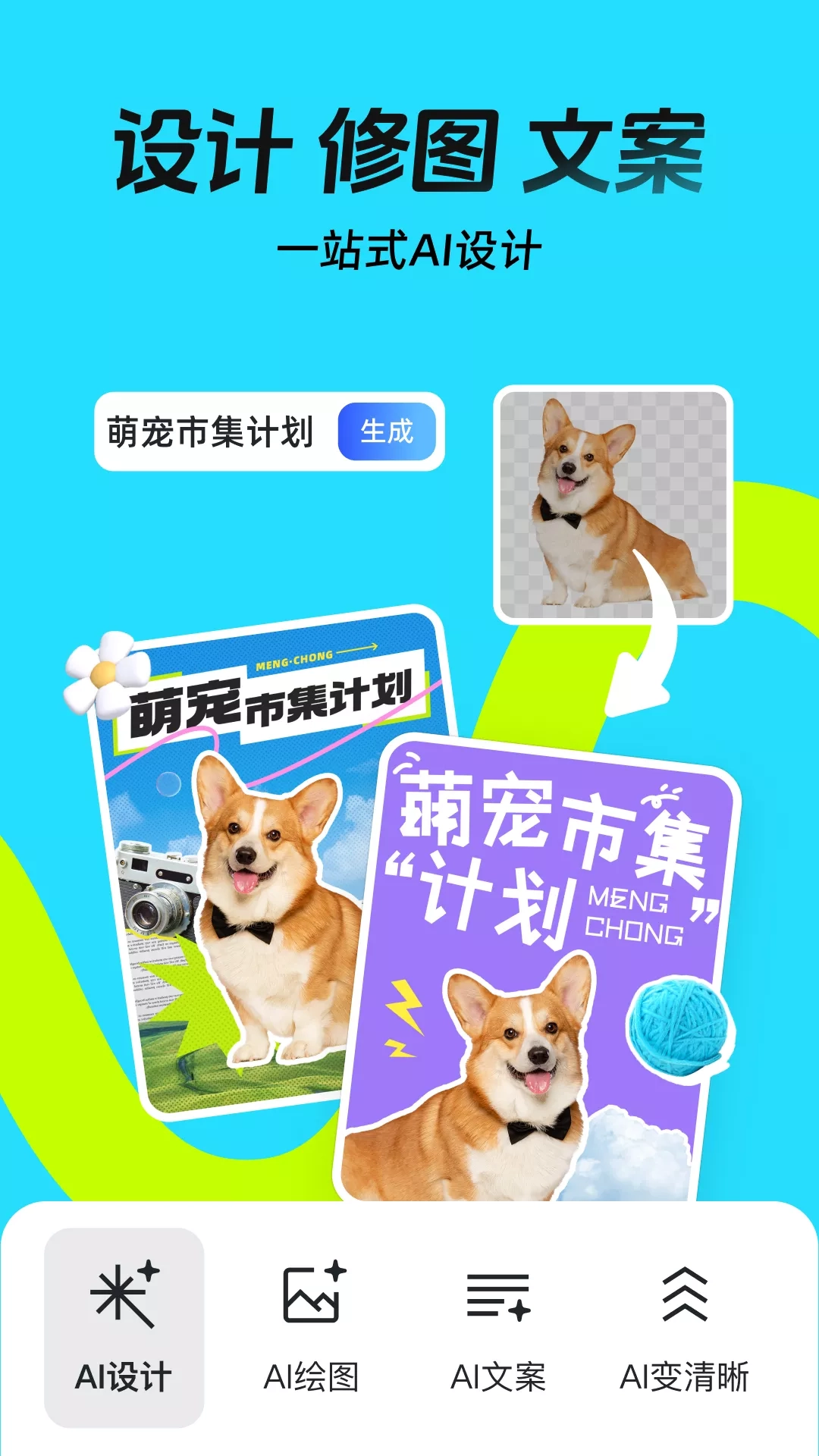 ·【稿定设计】全网累计下载超4亿人次! ·只需改字换图,即可迅速制作各类视觉作品。 ·无论是海报、PPT、视频封面,还是周边物料,轻松应对各类设计需求。 ·推出自媒体博主创作模板,简化创作流程,实现快速涨粉。 ·稿定设计—让设计更简单,让营销更有料! ==稿定设计,助力自媒体博主,一键生成爆款笔记== 「AI文案」只需输入关键字,便能轻松为你定制标题和攥写笔记,助力视频脚本的创作,vlog视频、推文和营销内容更加引人注目。 「AI设计」输入主题文字,自动生成各类封面设计,无论是大字封面设计,人物封面还是科普对比封面,统统为你一键搞定!大幅提高作图效率。 「AI绘图」丰富效果选择,生成独特图像,涵盖动漫、头像、插画等风格。 「AI素材」 将脑海中的构思转化为图像效果,轻松实现创意。 「AI修图」 精准抠图,智能消除笔痕,提升清晰度,拓展图像空间等。 「海报制作」多图层设计,无需PS,只需改字换图,手机一键出海报 「图片标记」提供贴图、线框、马赛克、遮罩、二维码、标签、箭头等多种实用功能,更有多种滤镜使用,提升图片的艺术感,满足不同风格的需求。 「图片编辑」智能裁剪、预设尺寸、新建画布、水印、艺术字体等便捷操作。 「拼图拼视频」不懂排版?200+版式任您选择,拼图海报模板一键套用,拼接布局轻松又趣味十足。 「微商水印」水印模板元素可直接替换,支持全屏或批量水印,助您引流与防盗。 「视频制作」借助稿定模板,视频剪辑只需简单替换。 ==稿定设计,满足各行业的设计需求,服务多样宣传== 「海量模板素材」20万+图片视频模板,9000万+可商用版权素材,1000多种正版字体、5000多种正版音频。访问官网更有1万+PPT图表模板...模板素材覆盖各行各业设计需求,轻松应对各种宣传任务。 「原创保护」拥有上千名优质设计师,天天做原创,日日上新素材。用稿定,版权无忧、原创无忧、追热点无忧。 「热点日历」 实时更新的节日营销设计模板能迅速适应主题,提高宣传效果,节省时间并激发创意。 ==稿定设计,满足生活所需的完美解决方案== 「自媒体用图」丰富的爆款模板,涵盖文章配图、热点追踪、节日海报与宣传图,轻松应对各种创作需求,出稿不求人 「商家用图」新品上线、成交图、朋友圈晒图、营销海报,与话术一应俱全,助力商家迅速出击。 「创意设计」 无论是请柬、贺卡还是邀请函,让每一个纪念时刻更有仪式感,打造独特的纪念时刻。 「标记生活」独家贴纸、创意标签、画笔、一键滤镜与拼图功能,轻松打造受欢迎的图像。 「教育培训」招生图、课程宣传图、讲师开课图......招生培训无烦恼 「粉丝应援」应援海报、手机壁纸、明星行程图......快来挑选心仪模板为爱豆打call 「团队协作」通过共享素材与灵活管理,提升创作效率与资产安全。 更多行业场景,期待您的探索与发现。