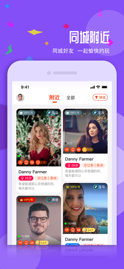 陌遇作为一个真实的优质同城约会聊天交友软件,拒绝虚假聊天交友,虚假社交,让有心的soul情侣单身男女真挚相爱相看,让幸福来得更快更真。 陌遇同城聊天软件可以即时聊天交友,线下约会、彼此心动,伊对异性交友,以及分享自己的生活到朋友圈互相深入了解,即时闲聊生活遇到的开心事情。 1.同城交友——同城约会聊天交友,探探周围附近的陌生人,只和真实的人谈恋爱,采用实名制,打造一个可以真实的陌生交友聊天社交软件环境。 2.流畅交流——流畅的视频聊天和语音聊天体验让你和感兴趣的ta聊天交友更畅快,不单单是文字聊天,视频聊天,语音聊天也能找到新玩法 3.牵手沟通——婚恋专属服务帮你找对象,对ta有好感,直接点击头像进行聊天交友,飞聊传递你的爱到好感,加速脱单。 4.实名制交友——杜绝酒托等不良虚假用户,找到身边的有缘人,尝试一周cp,不单单吹牛聊天,更有深度聊天尽在附近约会交往的好友中约单