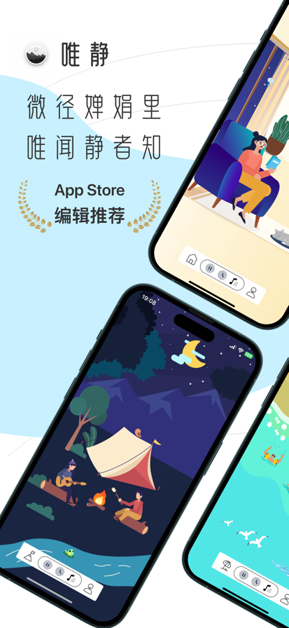 唯静,名字取自唐代诗人姚合的一首诗:微径婵娟里,唯闻静者知。 欢迎体验唯静,我们为您提供多种场景和声音,帮助您在不同的情境中实现深度放松、提高专注力和平静内心。无论是需要入睡、工作专注还是简单地远离繁杂的世界,唯静都能满足您的需求。 主要特点: 多种场景选择:包括营地、海滩、房间和佛堂,每个场景都带来独特的体验。 30多种声音:涵盖风声、雨滴、海浪、自然鸟鸣等声音,上百种组合随您挑选。 功能多样:帮助入睡、提高专注力、减压放松、提升精神状态等多种功效。 定时器:设置白噪音播放时间,自动关闭,省电省心。 简洁易用:用户友好的界面,轻松调整声音和场景,随时享受宁静。 唯静是您达到内心平和、提高生活品质的理想选择。 唯静还提供了精美的小组件,让您能够轻松访问白噪音体验,而无需打开应用。这些小组件不仅美观,还能提高您的使用便捷性,以下是它们的主要特点: 1. **快速访问**:在您的主屏幕上添加唯静小组件,一键即可启动您喜欢的场景和声音,省去了打开应用的步骤。 2. **定制化选项**:选择您最常用的场景和声音组合,将它们添加到小组件上,以便快速切换至您最喜欢的设置。 3. **自动切换模式**:唯静小组件还支持自动切换模式,让您能够在不同的时间段享受不同的声音和场景,例如在工作时使用专注场景,在晚上使用助眠场景。 唯静的小组件将让您更轻松地融入宁静和专注的状态,无需繁琐操作,让您的生活更加和谐与高效。定制您的小组件,让它们适应您的需求,提升您的生活品质。 下载唯静,让白噪音带您进入一个宁静的世界,随时随地享受放松和专注。立即开始您的唯静之旅! 「自动订阅会员说明」 1、服务名称:唯静每季度订阅 2、价格:连续包季产品为12元/季 3、购买自动订阅会员的账号,会在每个月订阅期到期前24小时,从您的iTunes账户中扣费,扣费成功后顺延一个订阅周期。 4、如需取消订阅,请手动打开苹果手机“设置” -->进入“iTunes Store 与 App Store”-->点击“Apple ID”,选择“查看Apple ID”,进入“账户设置”页面,点击“订阅”,选择唯静会员服务取消订阅即可。如未在订阅期结束的至少24小时前关闭订阅的,将视为您同意继续授权,此订阅将会自动续订。 「服务条款」 https://weiweiplay.wordpress.com/2021/05/18/%e6%9c%8d%e5%8a%a1%e6%9d%a1%e6%ac%be%ef%bc%88terms-of-use%ef%bc%89/ 「用户隐私协议」 https://weiweiplay.wordpress.com/2021/05/18/%e9%9a%90%e7%a7%81%e6%94%bf%e7%ad%96/ — 联系和反馈 — 对于产品如有任何疑问和建议,请联系我们 邮箱:dw19840929@foxmail.com QQ群:858959270
