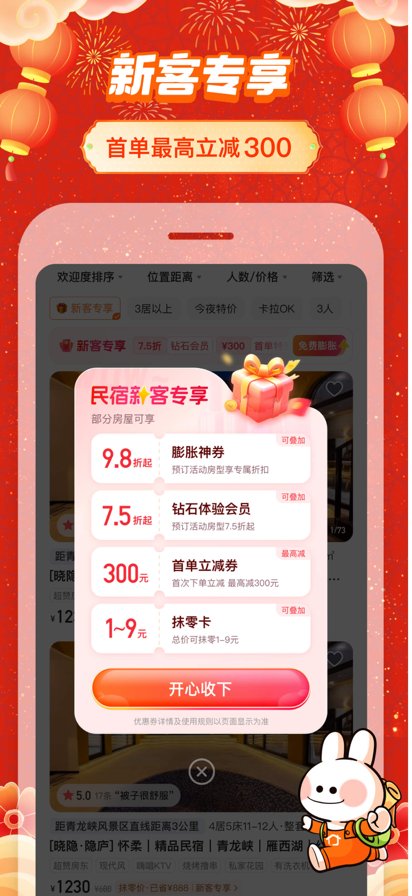 全球民宿分享的领航者-【途家网】 全球公寓民宿预订平台,提供公寓、客栈、民宿、短租房、短租公寓、日租房、家庭旅馆、别墅等多种住宿体验;包罗树屋、房车、游艇等各式新奇美宿。享2倍酒店面积,性价比更高,更适合全家出游;出差能洗衣,带娃能做饭,旅行如同回家。还有培训、考试、求学、求医等多样化需求都可得到满足。全球公寓民宿短租住宿预定尽在途家网! 在这里,你可以: 【国内外海量民宿】覆盖全球超100万套房源,不管你是国内游或境外游,你都可以直接搜索,也可按价格、地标、便利设施等快速找到您需要的房源。不管你是国内游,感受祖国的大好河山,亦或是境外游,体验别样的异国风情,你都可以在途家搜到心仪的民宿、公寓、客栈、短租房、短租公寓、日租房、家庭旅馆、海景别墅等。周末或假期,亲子游、闺蜜游、出差、轰趴、穷游、毕业旅行、带父母去旅游还是蜜月旅行,已经尝试过五星酒店、特价酒店、度假酒店、精品酒店、快捷酒店,经济酒店,不如住进特色民宿里! 【特色主题房】别墅、老洋房、海景房、四合院、酒店式公寓各色房型,更有网红民宿、品牌民宿特色主题等你选。 【房屋钻级评级】专业的房源钻级分级,帮您快速准确地找到舒心好房。 【多样出行场景】无论是家庭出游、境外探索、商旅出差、聚会轰趴,短租/长租;满足你的自驾游、周边游、自由行、跟团游等各种出行姿势。 【超高性价比】今日甩卖、连住优惠、新房特惠、早鸟优惠、周四特卖;超高性价比,用更实惠的价格,享受空间大更舒适的房屋。 【贴心服务】接送机、景点门票、目的地周边礼品都可在预订民宿时一并选择,一站式贴心服务。 无论去北京、上海、广州出差实习住民宿和短租公寓,还是去重庆、成都旅行住当地民宿,无论去大理丽江、杭州住特色民宿客栈;无论是亲子游、度蜜月、毕业旅行、全家出行,还是穷游,你都可以按价格、地标、便捷设施等快速搜到心仪的特色民宿、短租房和公寓、精品酒店、度假酒店、青年旅社,北京的胡同四合院、上海石库门和小洋房、广州的骑楼、重庆山城的吊床房……立刻下载【途家民宿】App,体验旅途中的家。 ——联系我们—— -客服热线:400-188-1234 -新浪微博:途家 -微信公众号:途家民宿官网