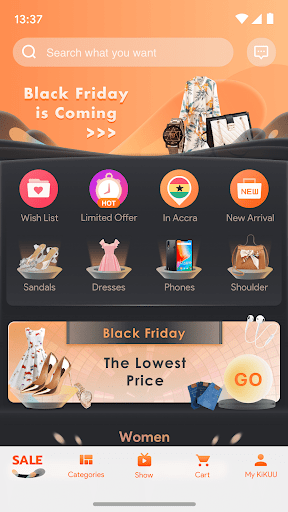 KiKUU是一家非洲在线商城,APP内提供超过40万种最新时尚产品。从时尚单品到生活必需品,每天都能享受海量优惠!<br>超过 1800 万非洲人使用 KiKUU 购买价格实惠的商品。包括加纳、坦桑尼亚、喀麦隆、乌干达、刚果民主共和国、塞内加尔、卢旺达。让我们跳过购物中心,立即在 KiKUU 上寻找更低的价格吧。<br><br>特征:<br>* 所有产品免费送货<br>* 持续的优惠券赠品、折扣、闪购和超级优惠<br>* 限量优惠,最优惠价格,每天更新3次<br>* 新品每周更新<br>* 7 天无忧退货和退款<br>* 直接与卖家交谈以获得最优惠的价格<br>* 本地服务团队<br>* 安全便捷的在线支付方式<br>* 通过自动发货通知跟踪您的订单<br><br>使用 KiKUU APP 安全便捷地在线购物!<br><br>KiKUU 上可以购买什么商品,详情如下:<br><br>新潮女装:连衣裙、上衣、T恤、衬衫、长袍、非洲服装、夹克、毛衣、运动服、下装、裤子、牛仔裤、短裙、短裤、泳装、内衣、打底裤...<br><br>帅气男装:上衣、T恤、衬衫、西装、夹克、毛衣、牛仔裤、休闲裤、短裤、运动服、内衣……<br><br>鞋子:凉鞋、高跟鞋、高跟鞋、运动鞋、运动鞋、靴子、帆布鞋、商务鞋……<br><br>箱包:手提包、单肩包、背包、斜挎包、手拿包、钱包、旅行包、公文包...<br><br>配饰:珠宝、手表、帽子、太阳镜、围巾、皮带、袜子、发饰、领带、假发...<br><br>儿童:女装、男装、鞋子、箱包、玩具、学习用品、婴儿用品......<br><br>家居:电器、厨房工具、炊具、布料、时尚家居装饰、灯具、床单、家具……<br><br>美妆:刷子、护肤品、香水、口红、眼影、粉底……<br><br>电子产品:智能手机、电脑、扬声器、健身追踪器、智能手表、手机壳、充电器、耳机、小工具、汽车装饰、记事本、清洁剂……<br><br>运动:运动装备、举重、足球、篮球、男士运动服、女士运动休闲服……<br><br>您也可以从我们的网站购买<br>https://www.kikuu.com<br><br>我们来谈谈吧!<br>感谢大家的支持和建议!我们不断改进该应用程序,以便为您提供更好的服务。请发送电子邮件至 service@kikuu.com 以发表评论、报告问题或提出建议。<br>您还可以在社交媒体上找到我们(搜索 KiKUU)