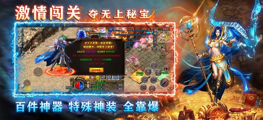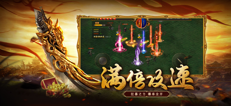 年度重磅复古巨作,全新版本,经典热血!高自由度游玩方式,紧张刺激的副本体验,极品装备收集乐趣,跨服pk,热血团战,散人霸服,爆率全开!原版复刻经典BOSS系统,和兄弟并肩组队打BOSS,体验疯狂收割的乐趣,让你不再为装备和资源发愁!并肩征战,问鼎玛法之巅,快来捍卫你们的热血荣耀!