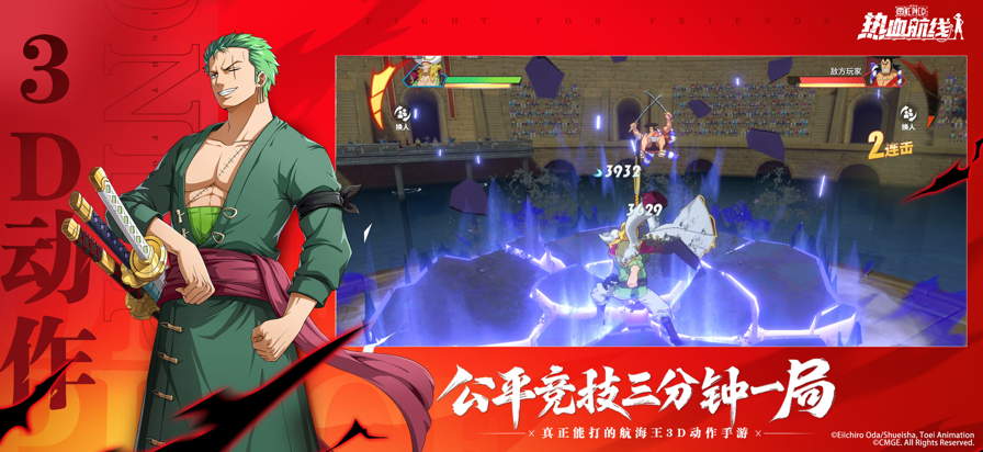 真正能打的航海王3D动作手游! 《航海王热血航线》是一款东映动画正版授权,千万海米首选! 游戏力求还原伙伴的技能设定和华丽特效,为玩家带来酣畅淋漓的动作体验,PVP竞技场放肆开打,全视角3D战斗霸气出招!在游戏中,你还可以重温原著动画剧情,收集超强力伙伴,自由探索奇幻海域,体验立体还原的沉浸式航海世界。 出发!“航海王我当定了!” 【正版还原】官方授权,海米首选标杆之作! 东映动画正版授权,极致还原伙伴的每个技能设定,打造酷炫华丽的战斗特效,带来热血畅快的动作体验……力求为玩家呈现出前所未有的高品质航海王IP手游巨作! 【热血动作】霸气出招,全视角战斗放肆开打! 我喜欢的伙伴怎能被动挨打,主动出击才是勇敢的海上战士!组合、连招、走位、出拳、释放……在竞技场酣畅战斗,享受动作爽感!1V1、3V3、阵营攻防、多人PK……即刻开打,秀出高光时刻! 【伙伴收集】强者登场,组建超能打航海团! 收集强力伙伴和心仪船只,随心组建最强航海团!在游戏对战中,玩家可以召唤喜爱的伙伴一同战斗——毕竟,并肩作战、才是伙伴的真正含义! 【3D全景】高精建模,航海世界触手可及! 还原度max,精细到每栋房屋,让玩家体验一个真实立体的航海王世界!完整海域地图、原版声优配音,仿佛裸眼穿越航海王世界,无论是阿拉巴斯坦的漫天黄沙,还是七水之城的粼粼波涛,尽在热血航线! 【海域探索】自由探索,随机事件才是真冒险! 航海王当然要自由冒险!超大海域,纵情航行,翻越颠倒山,飞上天空岛,探秘深海监狱,挑战海兽采集挖宝,触发随机新奇彩蛋!看到那根晃动的指针了吗?那就是冒险的下一个目的地! —联系我们— 官方抖音:航海王热血航线 官方微信:航海王热血航线 官方微博:航海王热血航线 官方频道:航海王热血航线官方频道 ©Eiichiro Oda/Shueisha, Toei Animation ©CMGE. All Rights Reserved.