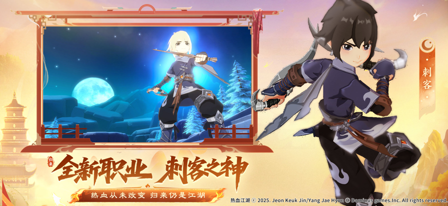 《热血江湖:归来》是经典与创新的完美碰撞,更是一段重燃热血、再续前缘的江湖传奇! 游戏保留了《热血江湖》端游那令人怀念的Q版风格,美术品质得到了质的飞跃,五大职业经典还原。那些曾陪伴你度过无数日夜的经典特色,如强化合成、宠物助战、野外PK、正邪大战等,都在《热血江湖:归来》中一一重现,带你重回那个热血沸腾的江湖世界。 【游戏特色】 ——经典场景与角色还原 游戏高度还原了《热血江湖》原著中的经典场景,包括: 泫渤派——武林正派的核心之地,玩家初入江湖的起点。 神武门——名门正派,高手云集,肩负武林正义。 虎穴谷——危机四伏的险地,隐藏着众多江湖秘宝。 北海冰宫——极寒之境,神秘势力盘踞,暗藏惊天阴谋。 同时,游戏重现了韩飞官、谭花麟、小香、天魔神君等经典角色,让玩家在熟悉的江湖中重温热血故事。 ——全新热血江湖剧情 在延续经典漫画剧情的基础上,游戏加入了全新原创故事线: 玩家扮演泫渤派弟子,因意外获得八大奇宝之一的“火龙刀”而身中奇毒,被迫踏上寻找八奇宝的旅程。 随着调查深入,玩家逐渐发现名为“神地”的神秘势力正在暗中操控武林,一场更大的阴谋浮出水面…… NPC对话、支线任务、隐藏事件等丰富玩法,让玩家沉浸式体验江湖恩怨与爱恨情仇。 ——美术风格全面升级 在保留原作Q版风格的基础上,角色模型、场景细节、技能特效等全面升级,画面更加精致细腻。 昼夜交替、天气变化,让江湖世界更加生动。 即使不做任务,漫步在泫渤派的樱花林、北海冰宫的雪原,或是与NPC闲聊,也能感受独特的江湖韵味。 ——精致捏脸系统 玩家可自由定制角色外观,打造独一无二的侠客形象: 多种风格可选,从俊朗侠客到俏皮少女,满足不同审美。高矮胖瘦、肌肉线条均可微调,塑造个性化角色。 ——正邪势力大战 玩家可加入“正派”或“邪派”,体验不同的剧情与专属任务 全新正邪战场、门派大战、巅峰对决等玩法,让玩家感受不同类型激战的快感。 争夺“天下第一”称号,成为江湖传奇! ——特色轻功系统 完成主线任务后解锁,角色可习得“疾龙云中行”轻功,御风飞行,自由穿梭于江湖各地,饱览江湖美景。 ——全新宠物助战系统 江湖中隐藏着各式宠物,玩家可召唤、培养专属战宠。 宠物拥有独特技能,如治疗、控场、爆发输出等,助力玩家战斗。 宠物将是玩家行走于辽阔大陆中最忠实的伴侣! 无论你喜欢怎样的玩法,《热血江湖:归来》都为你提供了一个广阔的舞台,让你尽情展现自己的风采,打造专属于你的江湖传奇!