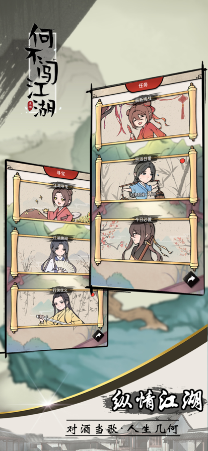 《何不闯江湖》——你的江湖,轻松好闯荡! 在这款放置挂机游戏中,你无需时刻盯着屏幕,只需一键放置,角色便会自动冒险,打怪升级。轻松护肝,不再熬夜爆肝,让你在忙碌的生活中也能畅享江湖的乐趣。更重要的是,我们坚持公平游戏,不氪金也能畅玩无阻。在这里,你可以凭借智慧和策略,书写属于自己的江湖传说,无需花费大量金钱也能成为一代大侠。快来《何不闯江湖》,开启你的武侠之旅吧! 《何不闯江湖》——你的江湖,护肝不氪金! 作为《何不闯江湖》的开发者,我们一直致力于为玩家们创造一个轻松、有趣且公平的江湖世界。我们深知现代生活的快节奏和压力,因此特别设计了放置挂机的玩法,让玩家们在忙碌之余也能轻松体验江湖的冒险与乐趣。 在《何不闯江湖》中,我们强调“轻松护肝”的游戏体验。你无需长时间在线,无需熬夜爆肝,只需简单操作,就能让你的角色在游戏中自动冒险,持续成长。同时,我们坚决反对“氪金”文化,致力于打造一个不氪金也能玩得尽兴的游戏环境。在这里,每个玩家都有机会凭借自己的智慧和策略,成为江湖中的一代大侠。 我们衷心希望,《何不闯江湖》能成为你休闲娱乐的好伙伴,让你在忙碌的生活中找到一片属于自己的江湖天地。感谢你的支持和参与,让我们一起闯荡这个精彩纷呈的江湖世界吧!