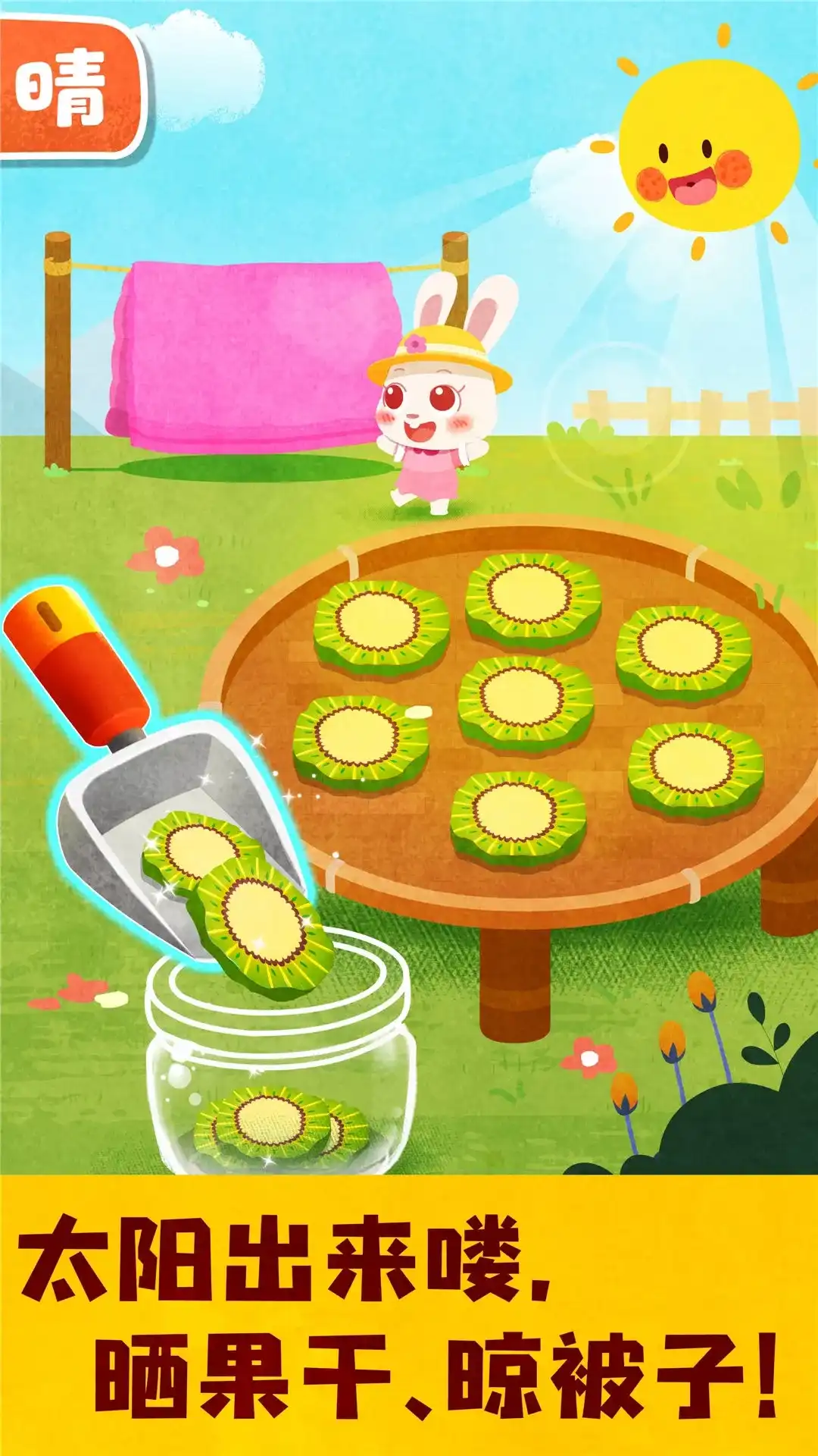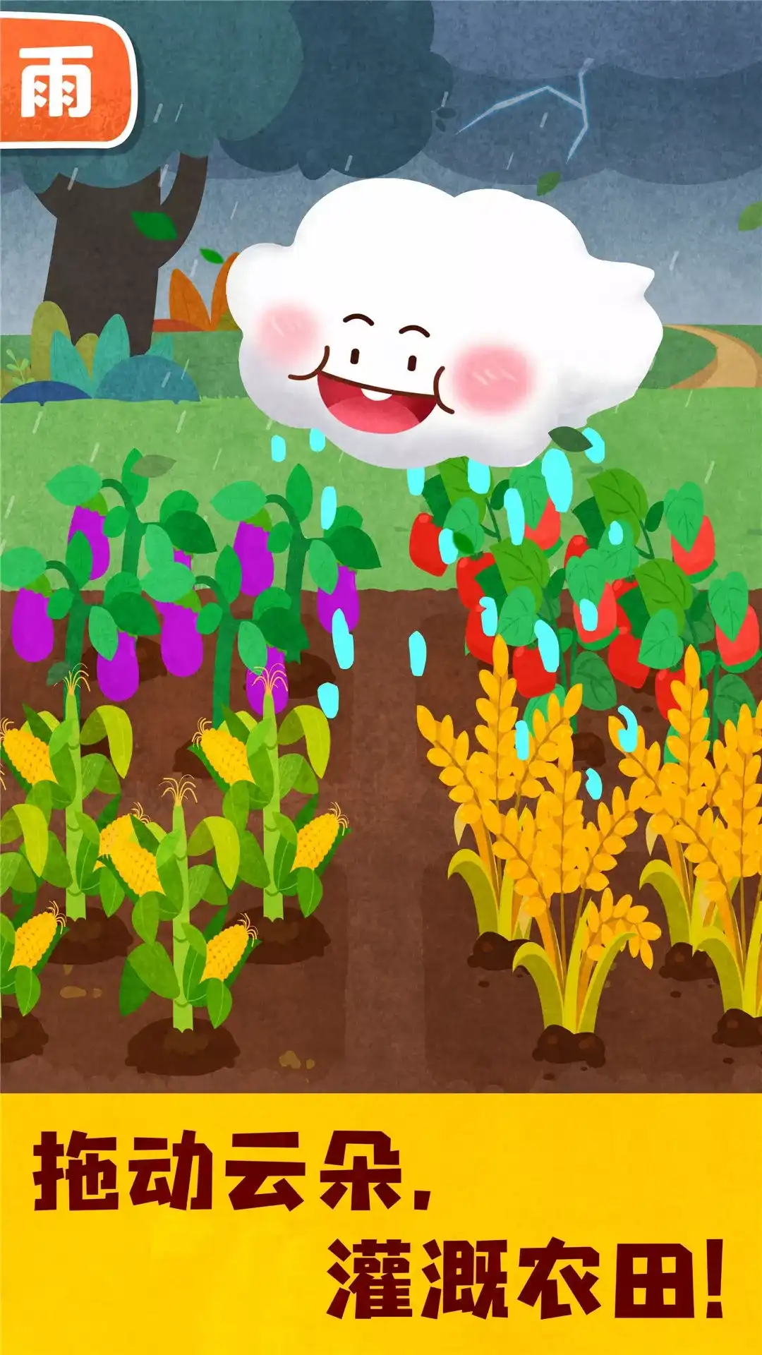【宝宝天气认知】通过趣味的益智互动,模拟各种天气的变化。帮助宝宝认知常见的天气,了解不同天气的特征! 【走进森林,体验阳光的作用】 化身野外观察员,出发去森林体验喽!大晴天,宝宝别忘记做好防晒呀。植物怎么都蔫蔫的?原来是植物长时间没晒太阳,变得不健康哦。宝宝们快帮植物们收集阳光吧。快看,完成了“光合作用”的植物又恢复活力啦。 【抗洪灌溉,认知雨水的特征】 快下大雨啦,宝宝们快来加固防洪堤坝。河水上涨,没有堤坝,农田会被淹没的!挑选合适的砖块。别忘记再放置几个沙袋,会更稳固!玉米、水稻、葡萄藤……拖动降雨的小云朵,让蔬果们吸饱水分!瞧,果蔬们长得更好啦。 【小镇玩雪,感受雪季的魅力】 外面下大雪喽,宝宝们穿上厚棉衣、戴好手套,一起来堆雪人吧!动动小手,捏个小球,滚啊滚,雪球堆成了雪人。胡萝卜鼻子、摩登的眼镜框……DIY时尚雪人,帮助宝宝加深对雪天的记忆,快乐认知!
