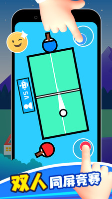 你和你的好友,谁更胜一筹? 多人双人对战游戏双人游戏同步游戏设计,多种手指对战关卡来测试你的反应,实时完成两人游戏挑战,享受最刺激的手指对战盛宴! 玩法包括: - 乒乓对战:用手指移动球拍并旋转球。先获得 11 分者获胜! -旋转战争:拖动按钮移动陀螺,看谁会先被撞出圈外,来场实力对决! - 小人跑酷,点击改变重力方向,控制角色收集更多金币即可获胜! -台球:和朋友面对面来次台球对决,看谁会成为球桌的传奇任务! - 赛车达人,移动手指来驾驶汽车。与你的对手竞争并获得第一名!挑战速度极限,感受赛车的乐趣! - 坦克对决,点击开火,按住按钮前进,摧毁对方坦克并赢得坦克星星! -井字棋:90后双人经典小游戏,让你在移动设备上也能和朋友来场挑战! -打手掌:童年经典游戏,用此玩法挑战下你的朋友,看谁的手先发红! -相 扑:化身相扑运动员,来场力量的对决! 派对热场必备双人同屏2人小游戏,你值得拥有!