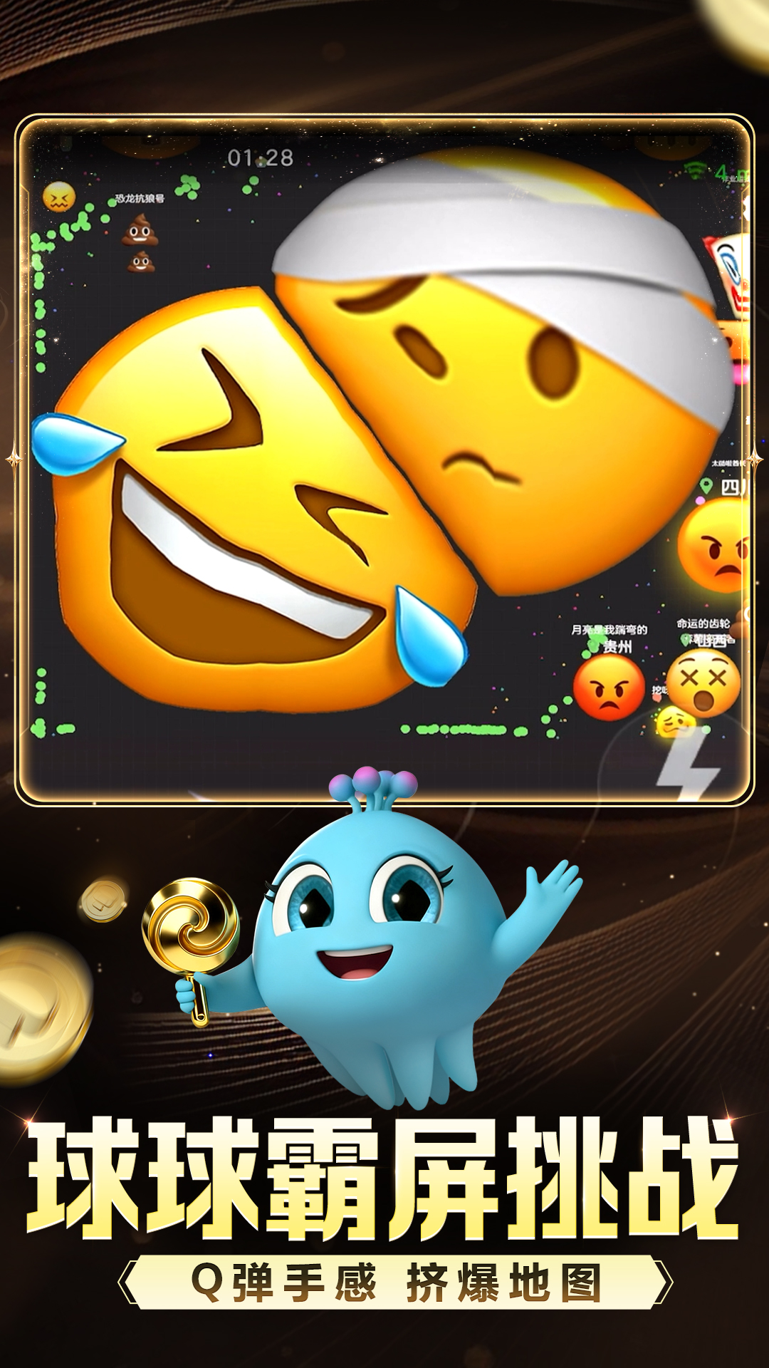 《球球大作战》(Battle of Balls)是轻松有趣的休闲竞技手游大作,年轻玩家的共同选择!<br>这是一款好玩、萌酷、有挑战性的实时对战休闲竞技游戏。在这个球球的世界里,每个人都化身为一颗独特的球球,大球吃小球,努力生存下来就是你的目标。嘿,成为一个“球球巨无霸”是每个球球的梦想呢!<br><br>游戏玩法<br>1.大球吃小球是这个世界的真理!<br>2.变大变胖是这个世界民众的梦想!<br>3.只要合理控制球球的运动路径就可以吃掉沿路的小球球,变大变胖变强!<br>4.小球不要沮丧,飞毛腿的你,只要不停的吃,终有一天你也会成为强大的胖纸呢!<br>5.大球也不要轻心,身为胖纸的你,横行霸道的时候千万小心暗器噢~<br><br>游戏特色<br>1.“戳戳戳”的懒癌操作<br>厕所里“戳戳戳”,电梯里“戳戳戳”,被窝里“戳戳戳”, 是的,即使你是一枚懒癌男(女),也只需要动用一根食指慢慢悠闲的“戳戳戳”,就可以控制球球的路径进行游戏了呢!<br><br>2.“快乐有趣”的策略战斗<br>“躲进灌木丛就不会被发现了呢”“分裂一次就能把它吃掉了吧!”“跟在大胖纸身边,好像会安全一些啊”对战的策略就在你的指尖,而小小的快乐生在你的心尖喔。<br><br>3. “我就是我”的独特形象<br>每个球球都可以自定义外观和名字。“嘿,快到碗里来!” “看见你,我就忍不住流口水了呢!”哈哈,你没看错,这些都是球球的名字喔!快来为自己起个霸气的名字吧!<br><br>4.“老少通吃”的游戏伙伴<br>跨房间,跨楼层,跨年龄层,跨地域,在这款游戏里,你遇见谁都是有可能的喔。斗智斗勇吧,把朋友吃掉,把邻居吃掉,把陌生人吃掉……咦,怎么听起来有点邪恶呢,但真的很好玩啊!哈哈哈!