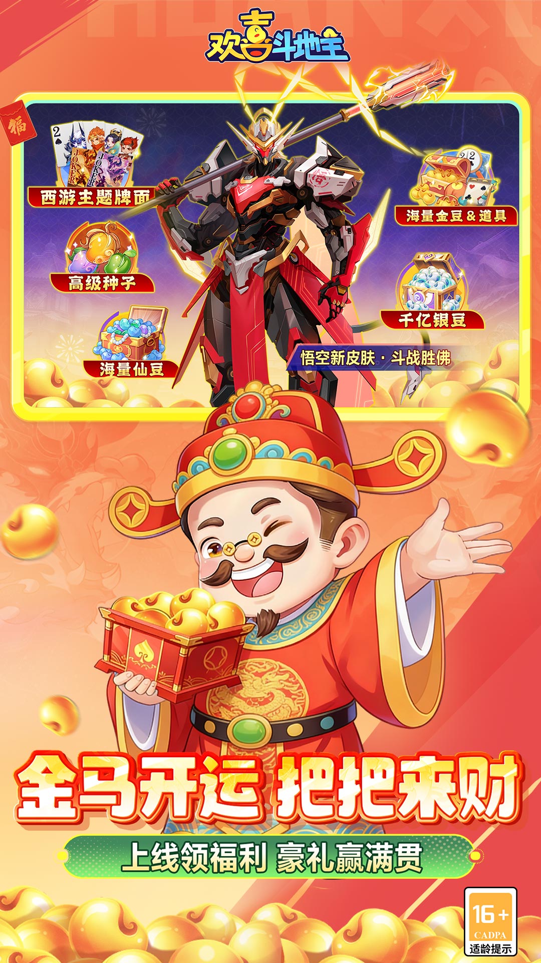 新年福利到!专属尊享礼包码HX6688,现在就能领!《欢喜斗地主》2026年春节必玩,全国牌友邀你实时对战,赢千元豪礼!速爽解压,放肆嗨玩!玩法多样,活动更丰富!全新藤屋餐厅上线,开店暴富,轻松来财!悟空转盘限时返场,邀你战爆BOSS!欢喜庄园,打牌种菜两手抓!保卫家园,合成塔防激战升级!更有定制年俗小彩蛋,点花灯、红包雨、全角色拜年贺新春,一起欢喜过大年! 多种玩法,风靡全网,等你来斗! ——主播爆款,创新玩法任选!—— 【克隆炸炸炸】网红人气爆款!连胡带炸爽不停! 【连炸斗地主】满屏炸弹,轻松破亿,爽快解压! 【王牌510K】超高倍率,一把千亿,双地主加倍暴击! 【超级掼蛋】起手好牌,一键理顺,开局翻倍连炸! ——限时活动,好玩不重样!—— 惊喜随机掉落,挂机修仙、热血战斗、休闲钓鱼不定时开启! 【藤屋餐厅】开店加油干,进账超千万!升级餐厅,做大做强! 【悟空转盘】提升战力,养成悟空!把把爽局,战爆BOSS超刺激! 【守护藤屋】BOSS来袭,爆裂对抗!瞄准弱点,一击破亿! 【桃源小仙】挂机升级,带宠修仙,躺平暴赚亿万豆! 【钓鱼挑战】欢乐钓鱼,速成大师!丝滑操作,大货秒上钩! 【龙宫探宝】探寻珍宝,好运连连,盆满钵满,解锁炫酷装扮! 【欢喜娃娃机】轻松趣味抓娃娃,一击必中,领限定奖励! ——百玩不厌!纯正经典斗地主!—— 【不洗牌】规则简单0门槛,练牌技,练手感! 【2v2】好友组队,合作双赢!拼实力,拼默契! 【巅峰赛】真人竞技,牌局博弈,高手对决秀实力! ——高品质特效,沉浸式玩牌!—— 轻国风画风,高品质场景。动态牌桌,珍宝龙宫,尊享体验! 独特角色系统,养成玩牌技能。致敬神话经典,角色悟空、哪吒皮肤,叱咤牌局!更有阿杰、乔诗语、云鹤追等知名CV加盟,沉浸式玩牌!