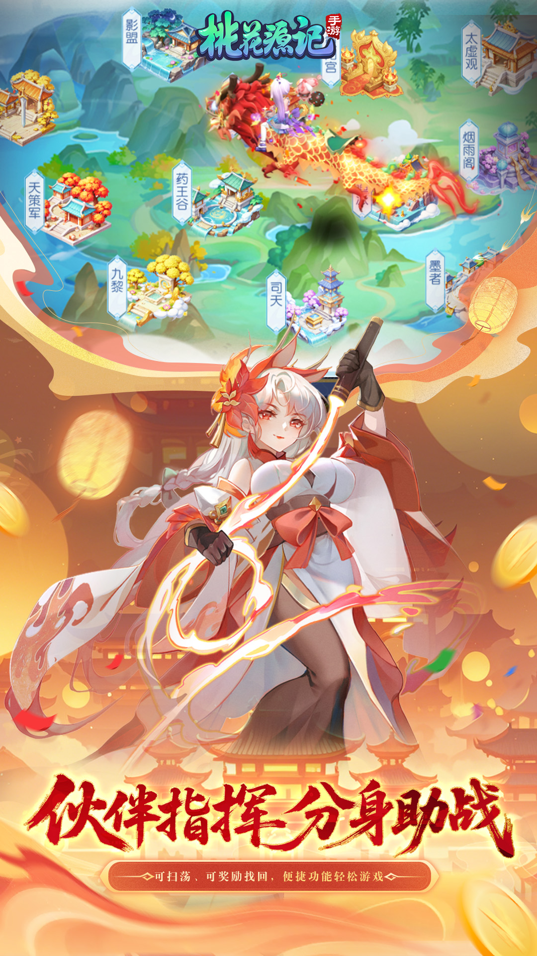 【游戏背景】<br>晋太元中,武陵人捕鱼为业。缘溪行,忘路之远近。忽逢桃花林……<br><br>及至唐神龙年间,桃花源突遭外敌入侵,家园破碎。为了找回被夺走的宝物,恢复桃花源往日的生机,你结识新的朋友们,踏上了未知的旅途……<br><br>【游戏特色】<br>一、经典回合,十三门派<br>经典回合玩法,十三门派,双成长方向,各式技能,策略多样。多年稳定运营,回合玩家的桃花源!<br><br>二、多样玩法,丰富活动<br>航海、打牌、商铺经营、肉鸽探险,还有丰富活动和副本。可休闲,可战斗,一款游戏,多重乐趣!<br><br>三、奇珍异宠,策略养成<br>上百种宠物可搜集,各有独特技能。打书不互顶,护符可拆卸,成品宠物活动就送。宠物养成无烦恼!<br><br>四、便捷功能,轻松游戏<br>同帮分身助战,伙伴智能指挥,未完成任务一键自动组队。可扫荡,可奖励找回。任务可单人可组队!<br><br>五、福利多多,自由交易<br>坐骑、装扮,活动就送;临时、永久,皆可选择。帮派红包,抢充值货币。装备宠物,自由交易!