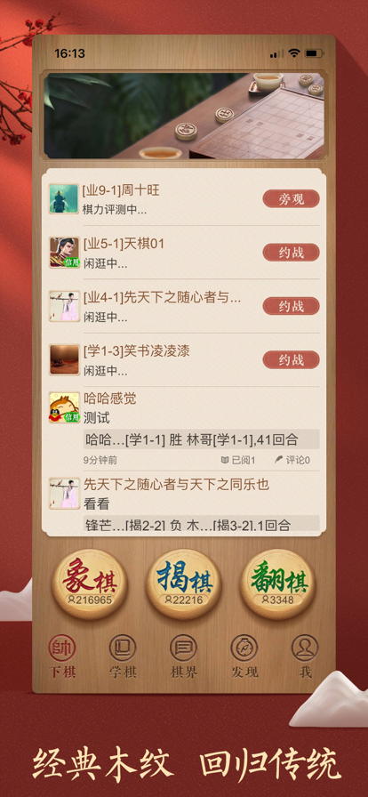 象棋是一款具有浓郁中国特色的益智游戏,趣味多多,更有不同类别的残局等你来战! 不断优化的智能算法,让你体验真人对弈的快感;难度随心切换、循序渐进,让你感受中国象棋的博大精深。 【产品特点】 1. 象棋联机模式,让你在棋海中大战四方。 2. 中国象棋对弈模式,无需联网,只要轻轻一点就能让你享受征战沙场,斩将夺帅的快感。 3. 游戏保存,棋局保存,棋谱保存,保存轻松进度。 4. 中国象棋残局挑战,杀法大全、象棋名谱、象棋路边摊、残局冲关等你来解。 5. 棋局推演,享受更高难度的中国象棋挑战。 6. 支持多种棋盘皮肤主题。 名谱推演、复盘、观战、残局挑战、炫酷棋盘等等等等,赶紧来挑战吧!