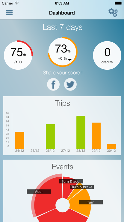 Increase your security with DriveAssist. This app is a tool created to analyze and qualify the behavior and the effectiveness of the driver in order to adopt a safely driving. By trip, by day or by period : - Adopt a safely driving style - Improve progressively your driving behavior by controlling your security score - Visualize your progress and your ranking compared with a set of other drivers - Activate alarms and notifications Download free DriveAssist and become a responsible driver !