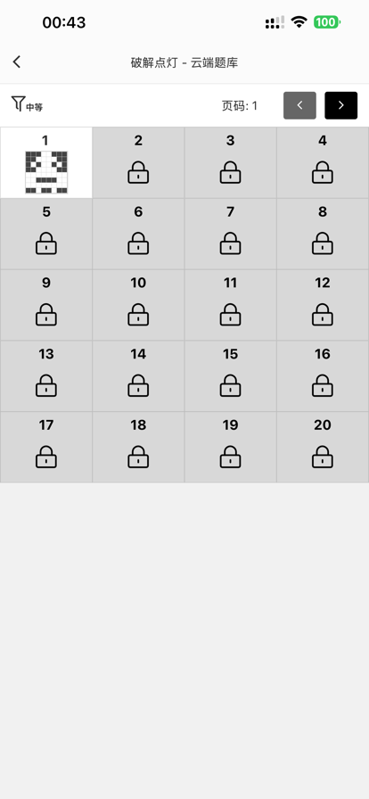 获取任意点灯(黑白迭代)题目的答案或逐步提示,支持3x3,4x4,5x5,6x6,7x7,8x8题目,还有丰富的题库。 ---------------------------- 点灯/黑白迭代 玩法说明:在 N行 x N列 的棋盘中,点击任一方格,该方格与其上下左右(若存在)的方格将进行黑白颜色转换。由初始盘转换至目标盘时,挑战成功,游戏结束。