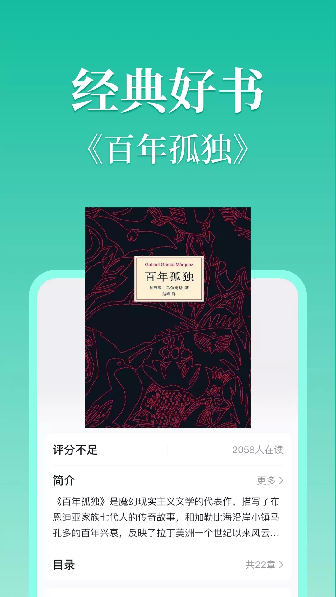 围猎、入青云、与晋长安、锦月如歌、生万物、凡人修仙传、国色芳华、淬火年代长安的荔枝、折腰等经典原著。 万仙来朝、万剑朝宗、燃烧的蜂鸟.时空追凶1990、血孩子、保护我方族长、第一天骄、清朝生活实录、龙魂剑圣、何日请长缨、牧神记、深空彼岸等热门网文出版图书。 【热播影视】 《大生意人》: 陈晓、孙千主演《大生意人》原著,晚清商界博弈破旧立新,借势谋局逆风翻盘,解锁“钞”级玩家的奔"富"传奇! 《凤凰台上》:任嘉伦、彭小苒主演《凤凰台上》原著,双强帝后爱恨纠葛,爱与江山此生不负! 《唐朝诡事录》:杨旭文、杨志刚主演《唐朝诡事录之长安》原著,朝堂诡谲莫测,长安风云再起,破八大诡案,揭身世之谜! 《四喜》:童瑶、蒋欣 主演同名电视剧原著,百态人生笑泪交织、家庭烟火治愈人心!平凡中捕捉幸福,一起寻找成长与自由的答案! 《大乔小乔》:赵露思、陈伟霆主演《许我耀眼》原著,表面光鲜的婚姻下隐藏着谎言与操控?一场关于爱与自我的耀眼重生! 【霸榜好书】 《神墟之主》:穿越仙门,他从记名弟子起步。凭借蚀文天赋与无双智计,一剑斩万劫,重定人道天!看张衍如何以凡人之智,问鼎仙途之巅! 《大道争锋》:携蚀文天赋穿越仙门,从记名弟子起步,看张衍如何以凡人之智,问鼎仙途之巅! 《天堂蒜薹之歌》:如果你想读一部莫言,又怕《丰乳肥臀》《生死疲劳》太过厚重,那么它是绝佳的起点。 故事紧凑,情感炽烈,是莫言创作中“愤怒”与“介入”色彩最为直接和浓烈的作品之一。 《独步成仙》:凡人流巅峰之作!别人修仙靠天赋,他靠嗑丹药肝到三界巅峰! 《全体起立!真龙归来!》:替罪入狱三年,王者归来第一剑,先斩负心人! 《桃花源没事儿》:看马伯庸如何借桃花源写尽当代打工人的仰卧起坐人生。 《草民》:蔡崇达的“故乡三部曲”收官之作,他致力于展现普通人骨子里的韧性和生命尊严。 《便携式桃源》:种瓜得仙草,养鸡变凤凰!骗子乞丐给的破画竟是桃源金钥匙?这波操作直接开启种田修仙暴富路! 【精彩短剧】 《今夜星光点点》《折云作舟》《不问归处》《寒门》《余生无你皆荒年》《归来已是陌路人》《天命凤女》《午夜花店》 【产品功能亮点】 -海量书库-超60万册正版图书,百万小时听书 -精彩短剧-热门爆款短剧任意看。 【福利活动中心】 读书会员、影视热门图书,福利送不停! 【新人福利】新用户海量内容免费看~ 【分类齐全】玄幻、奇幻、科幻、言情、仙侠、都市、出版、历史、悬疑推理、青春校园、女生同人等等~