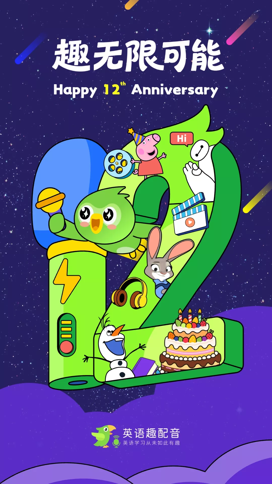 练口语就上趣配音!和1亿+小趣友一起学英语! 打通输出+输入学习闭环,让语言学习变得如此轻松好玩! AI智能学习,实时反馈+实战训练,助你告别哑巴英语! ------在英语趣配音可以做什么?------ 玩着就可以学英语! 【练口语】为经典内容配音学英语,百万素材选你选,影视剧库、热门动漫、经典动画、英文歌曲、同步教材…… 【练听力】你喜欢都可以随身听!视频一键转听力,听你想听,经典名著、必考词汇、英文演讲、历年真题…… 【背单词】百万原声视频例句,让你身临其境背单词,AI词汇私教1v1,加强词汇场景记忆, 掌握实际运用。 【同步练】教材全覆盖,预习复习两不误,萌宠AI学伴添动力,背单词、读课文、刷真题、单元测,完整科学学习闭环。 【AI语伴】AI口语陪练,中英文聊天,零基础学习,双语讲解,场景自由聊,外教一对一辅导,有趣又有聊! ------英语趣配音有什么?------ 1. 趣味形式学语言,告别传统枯燥学习法。 【看视频学】百万精彩视频,看剧学英语,与主人公原声对话,沉浸式学习! 【听歌学】经典英文歌曲边唱边学,流行歌曲、怀旧金曲、影视原声…… 【互动学】定期大赛,超多奖品等你拿,和大神切磋pk,还能邀友一起学! 【闯关学】游戏化练习,强化学习动机。知识点答疑,掌握重点难点。 【实战学】 费曼学习法,以用促学,实时任务监测,即时激励。 2. 多种趣味素材,覆盖多个领域。 【热门正版IP引入】迪士尼、小猪佩奇、巴塔木儿歌等官方正版授权,与主人公对话,身临其境学英语! 【多语种】全新日语、汉语的语种上线,更多语言学习选择。 【生词本】配音视频中的生词一键添加,覆盖语言学习生涯高频单词,加深单词场景使用记忆。 【多种词书】提供四六级、专四、专八、考研、托业、托福、雅思、GMAT、SAT、GRE等专业词书。 3. AI专业辅导,随时随地,在线学习。 【AI私教1v1】双语讲解,中英互译,例句引导,润色表达,打磨地道口语。 【专业打分】采用国家中高考口语打分系统,专业口语打分。 【实时反馈】音素级口语评测系统,AI智能算法多维点评,实时反馈发音语法问题并纠正。 【单词测试】可根据词书范围、数量、测试题型和时间速度进行个性化定制测试。 【能力测评】采用 CEFR(欧洲共同语言参考标准)框架体验研发英语能力测评,通过 5 分钟测试 10+道题,测出真实英语水平。