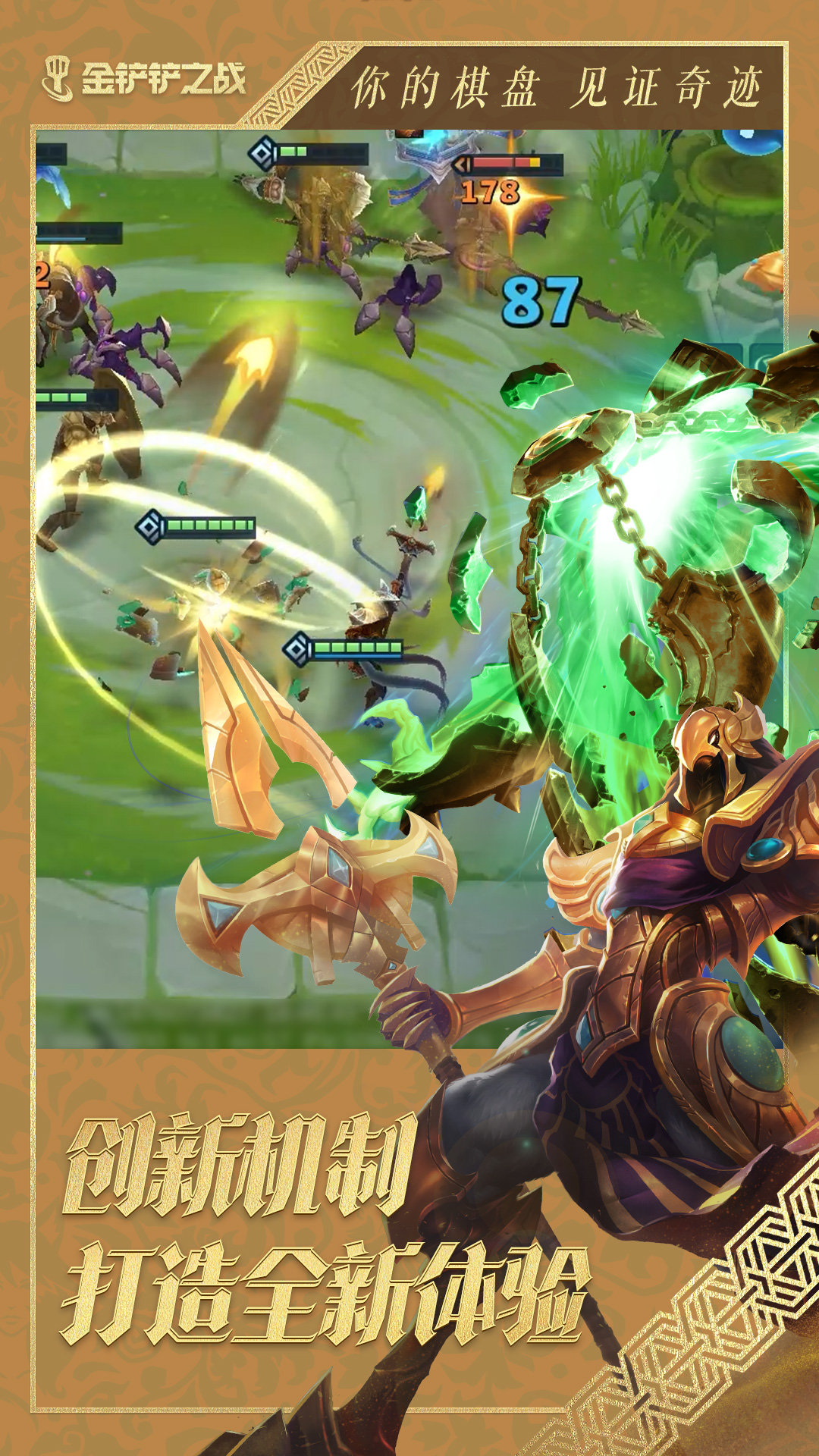 英雄联盟传奇等你翻阅!<br><br>【解锁!特殊弈子等你发现】<br>全新英雄解锁机制重磅登场,探索符文大陆的经典时刻,解锁特殊弈子,助力赢下每场对局!<br><br>【超多!熟悉英雄悉数登场】<br>100位弈子登场!更自由的英雄选择,更丰富的阵容搭配,你的每一步运营,都在书写独一无二的英雄史诗!<br><br>【探索!开启专属城邦羁绊】<br>符文大陆处处传奇!弗雷尔卓德的冰霜之塔凛然升起、诺克萨斯的毁灭召唤、皮尔特沃夫的伟大发明,这一切都由你探索!<br><br>【七费!更贵更强弈子降临】<br>7费弈子带来的是战场上的统治力,解锁他们吧,翻转战局,胜利将唾手可得!