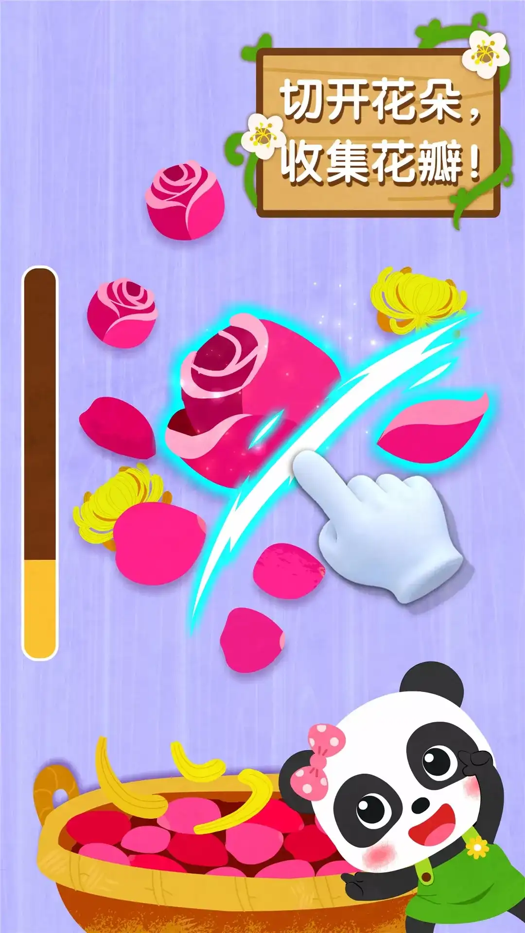 【奇妙鲜花房】是一款帮助宝宝认知鲜花的益智APP。在这里,宝宝可以将鲜花制成各种鲜花制品,通过这种方式认知鲜花的外形和名称,并了解鲜花的作用。 产品内容 妙妙的鲜花房开业啦!纯手工的鲜花口红、漂亮又好吃的鲜花饼……宝宝快来给妙妙帮忙,一起经营鲜花房吧! 先去花田里采摘鲜花! 拿起剪刀,剪下洛神花、茉莉和玫瑰;再拿起镰刀,收割薰衣草和满天星,别忘了把它们分门别类地放好!(帮助宝宝认识鲜花的外形、名称和生长环境) 来制作鲜花美食吧! 摘下鲜花花瓣捣碎,加入蜂蜜和糖搅匀,再用饼皮将它包裹,烘焙几分钟,又香又甜的鲜花饼就出炉啦!(锻炼宝宝动手能力) 还有纯天然鲜花口红! 将鲜花花瓣榨汁,过滤。将蜂蜡与鲜花汁一同加热至融化,口红液就完成啦!(训练宝宝的反应能力) 还觉得不过瘾?没关系!【奇妙鲜花房】里,还可以做薰衣草香包等好看的鲜花制品,宝宝快来一展身手吧!