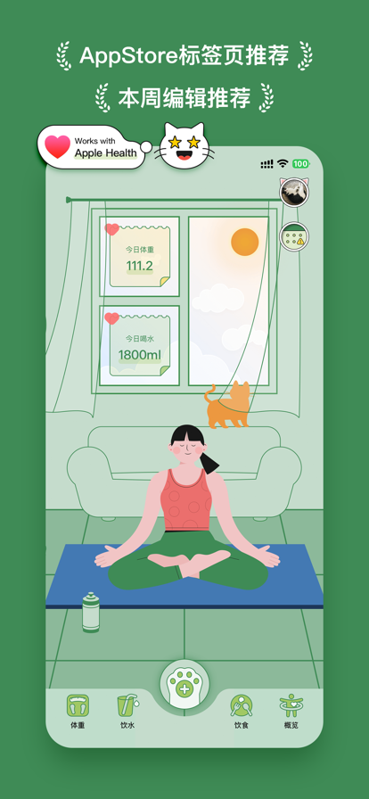 生活中,有人要减肥,也有人需要增肥,无论你属于哪一种,我们都应该时刻关注自己的身体健康状况,不盲目减肥或增肥,小懒喵更注重记录身体的健康数据,它通过简单、优雅的界面可以让你非常轻松的查看体重趋势、喝水记录、睡眠数据等等,并且支持实时追踪你的饮食或断食数据,帮你健康的实现减脂或增重的目标。 ◆ HealthKit 小懒喵已连接苹果HealthKit,可以同步体重、饮水、咖啡因、营养成分、睡眠、活动能量、步数、血压、血氧、心率、正念、晒太阳等数据到「健康」 ◆ 小懒喵有哪些功能? - 灵动岛:iPhone 14 Pro 系列灵动岛显示体重、饮水、饮食、运动、断食情况 - 实时活动:支持iOS 16.1锁屏实时查看体重、饮水、饮食、运动、断食情况 - 小组件:支持iOS 16锁屏和iOS 14桌面小组件 - 体重:选择场景,记录体重,按周、月、年多维度自动生成折线/柱状 趋势图 - 饮水:设置饮水目标,健康饮水,生成一目了然的饮水数据 - 咖啡:设置咖啡因目标,健康摄入咖啡因,生成一目了然的咖啡数据 - 饮食:记录饮食,15w+食物热量库,每天的摄入情况清晰直观 - 食谱:精选食谱,16+丰富的精选食谱,为你推荐每一餐的营养食物 - 运动:记录运动,消耗的卡路里,折线/柱状图一目了然 - 断食:内置10多种断食计划,日计划、周计划、自定义任意选择,灵活性更高 - 睡眠:设置睡眠目标,睡觉、起床一键打卡,轻松生成睡眠图表数据 - 体围:胸围、腰围、臀围、大腿围、小腿围、上臂围皆可自由记录 - 经期:预测生理期,经期状态贴心记录 - 便便:便便形状、颜色、气味、地点等帮你全方位记录 - 过期:记录过期物品,保持新鲜 - 数据备份:iCloud云端自动备份数据 - 饮水提醒:根据创建的提醒时间定时提醒喝水 小懒喵将会继续推出更多有趣的功能,敬请期待~ ◆ 我的所有App 『懒猫存钱』『喵一会』『HomeTime』『PutApp』,期待您的下载体验。 ◆ 我的网站 码力全开工作室:https://www.maliquankai.com (不定期分享产品/设计的各种资源) 码力全开资源站:https://design.maliquankai.com (产品/设计师/独立开发者的资源库) ◆ 联系我 您的建议对我们至关重要,任何问题和建议,写在评论区或者与我联系。 邮箱:larry@maliquankai.com 微博:@Larry_Dev 知乎:@Larry Twitter:@Larry ◆ 关于小懒喵高级版的订阅服务 该服务是订阅制的收费服务,你可以选择按年、买断的方式来使用该服务。 高级版(按年)是订阅制的收费服务,这意味着您将为未来的订阅使用而提前预支费用。当前您可以选择以按年的方式来使用该服务。在每个订阅周期即将结束时,您的订阅默认将自动续费,除非您自行取消自动续费,或者由我们取消该服务。 - 费用: 当前我们为该服务提供了18元每月、60每年、98元买断的标准服务价格,该价格可能会在促销时期会有所变化。当价格调整发生时,新的费用将会在您的下一个订阅周期发生。 - 退款: 当期的订阅和一次性买断费用将无法退款。请务必确保功能服务满足您的需求。 - 取消订阅: 如需取消续订,请至少提前24小时操作取消。您可以通过如下方法取消:打开系统设置 - 点击Apple ID - 点击订阅 - 选择小懒喵高级版,取消订阅即可。 使用条款: https://www.maliquankai.com/healthcat 隐私政策: https://www.maliquankai.com/healthcat-privacy-policy