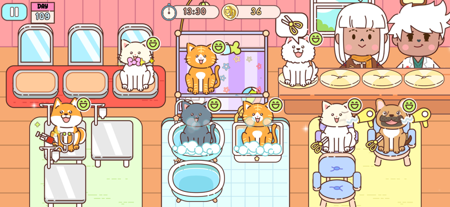 欢迎来到温馨的宠物沙龙!细心照顾这些毛茸茸的小顾客,看着你的小店一步步成长为热闹的宠物护理中心! 你的沙龙为可爱的宠物提供多种服务:洗澡、体检、美容甚至穿搭。你的任务是快速地照顾每一只宠物。 要反应快、合理安排时间——如果宠物等得太久会不高兴,主人也会不满意。顾客不满意就赚不到金币,而你需要金币来扩展你的生意! 一开始工作还很轻松,但随着顾客越来越多,工作节奏也会加快!用赚到的金币升级沙龙工具——新设备工作更高效,让你赚得更多! 游戏特色: • 经营你自己的萌系宠物沙龙。 • 丰富的护理玩法:洗澡、美容、健康检查、穿衣等! • 持续升级的挑战关卡。 • 有趣的惊喜小游戏,乐趣不断! • 明智使用金币,一步步升级沙龙! 每一个满意的顾客都让你离目标更近一步——打造最棒的宠物沙龙!你准备好了吗?