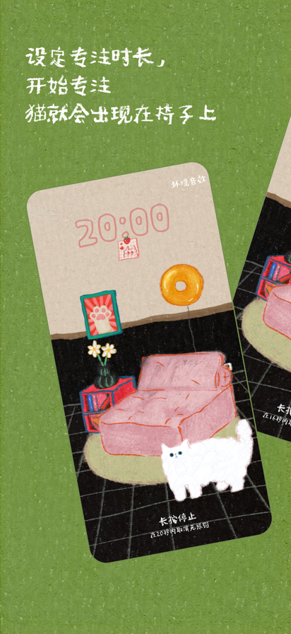 听说,当人进入专注状态时,椅子上就会出现一只猫咪,默默陪伴着你。 手绘风格与丰富的配色,让专注不再是冷冰冰的番茄计时器,而是一段温暖、有趣的体验。猫咪的存在不只是监督,更是陪伴,让番茄工作法过程不再枯燥乏味。 专注体验 专注成功会收到猫咪的礼物,失败则会留下垃圾。 将礼物兑换成鱼干,用来解锁家具和装饰,为猫咪布置温馨的小屋。礼物与装饰会根据季节和节日不断更新,猫咪形象也会持续增加。 注意:可能导致生产力提升、突发的猫咪收养冲动,以及莫名需要向数字宠物解释你的工作安排。 基础功能(免费版) - 无广告 - 支持番茄钟和正计时模式 - 收集礼物和垃圾,换成鱼干来购买新家具和装饰 - 屏蔽应用和网站以避免干扰 - 使用白名单选择专注时段想要使用的应用 - 内置待办清单,支持截止日期和提醒 - 专注时间线,一览今日的专注记录 - 统计概览,追踪你的整体进度 - 导出猫咪陪伴场景为壁纸,留作专注纪念 - 通过快捷指令,可以创建自动化在需要时自动启动专注 - 获得成就在猫咪房间中炫耀 - 锁屏小组件,无需解锁手机即可开始专注 - iCloud 多设备同步,在 iPhone 和 iPad 之间无缝切换 升级到专业版获得更多功能 - 自由混音环境音效,猫咪呼噜声、雨声、壁炉声、海浪声、咖啡厅聊天声,创造你的完美氛围 - 录制自定义提醒铃声,用于专注通知 - 编写自定义猫咪语录,用于完成和失败时的消息 - 用声音呼唤你的猫咪——它们听到名字会做出反应 - Apple Watch 配套应用——从手腕上开始、暂停和追踪专注 - 完整历史专注时间线——浏览任意日期并在时间线上添加贴纸 - 查看详细统计:以日、周、月、年视图查看你的进度 - 将专注记录同步到 Apple 健康、日历和提醒事项 - 解锁不同的猫咪毛色——随时更换外观 - 保存并切换白名单预设,适应不同的专注场景 - 更多专属礼物、装饰、椅子、地毯和房间物品 - 自定义休息时长、循环次数和长休息 - 添加自定义专注标签以更好地管理任务 - 多个猫咪主题应用图标,随时更换以匹配你的心情 - 主屏幕小组件:待办清单、专注状态和动态猫咪小组件 目前支持iOS 17及以上版本。 【如果有任何问题和建议,欢迎与我们联系】 邮箱: hello@catonchair.app Discord:catonchair.app/discord 小红书:@省省来吃饭 Instagram:xingrui_m 隐私政策: https://catonchair.app/zh/privacy 服务条款: https://catonchair.app/zh/terms