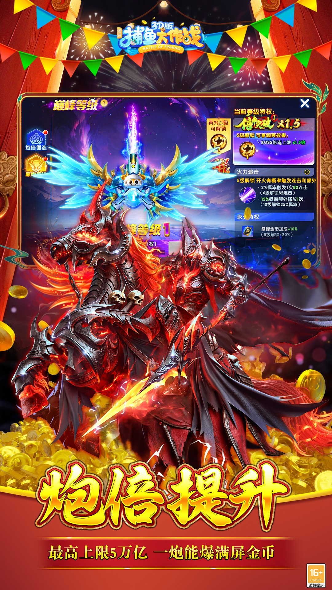 全新礼包码火爆上线,快来领取! HJSDSZBSQ、HJSDS888、HJSDS666、SHYDN、RSXYZ 捕鱼游戏迎来大革新!还在玩传统捕鱼app的用户们注意了! 捕鱼大作战全新版本——天使系列,全新BOSS、专属技能酷炫来袭,带你进入捕鱼新时代! 国内优秀美术团队、技术专家团队倾力打造,画面升级,福利升级! 【神兽白虎,全新神卫系统震撼上线】 全新神卫系统上线,近战攻击精准捕鱼,神卫觉醒,助您轻松击败四大神兽,在海底世界所向披靡,畅爽爆机体验,更有海量奖励等你来拿,快来抢鲜体验吧! 【超级英雄对垒,谁是终结者】 原汁原味展现未来科幻对决,圆您童年超级英雄梦!选一款超酷的机甲陪它战斗,带它过年! 【王牌真捕鱼,全新次世代视听盛宴】 在这里,您将体验影视级高清画质,3D环绕立体声乐,带给您绝妙的捕鱼体验。多鱼种、多BOSS、鱼好打的全新搭配,轻松解压,乐趣无穷! 【星际巨兽震撼来袭,灭世武器深海称霸】 风情万种的美人鱼,未来科技的机械鲨,穿越虫洞的钢甲龙,掌控黑暗的远古暝兽等,特殊的BOSS场景互动和事件玩法,等你来一探究竟!创新式沉浸体验,酷炫激光,横冲直撞的钻头,雷霆一击等,超酷炫体验! 【超多福利倾情放送,强力炮台酷炫翅膀】 登录就送海量金币,每日任务、节日玩法,多重福利领到手软。量身定制的炮台皮肤和翅膀系统,让您在捕鱼的世界也能惊艳四座。 【经典街机超级爆机】 经典街机玩法的主流捕鱼游戏,打鱼轻松,真正的能一炮破亿! 更多精彩,尽在捕鱼大作战!