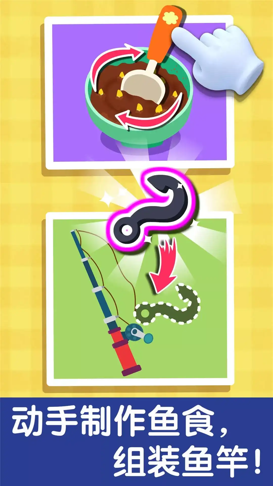 准备好了吗?开启和奇奇的钓鱼之旅! 动动小手,准备鱼饵和鱼竿 先准备钓鱼用品!剥下金黄的玉米粒,拿起小勺子,把玉米粒和饵料搅拌均匀,鱼饵制作完成。接下来,把鱼钩和鱼漂组装到鱼竿上吧。 多竿钓鱼,锻炼手眼协调力 同时使用四根鱼竿钓鱼,你敢挑战吗?凿开冰洞,放下鱼竿等待。哇!鱼儿上钩了,三根鱼竿同时钓到小鱼!快收起鱼竿,不要让小鱼跑掉。 鲨鱼躲避战,提升反应力 换上潜水服,去海底捕鱼喽。瞄准游动的鱼儿,发射鱼叉,抓住小鱼。小心!大鲨鱼来了!要迅速反应,立即往反向游动,躲避大鲨鱼! 认识20种鱼类的名称 捕到好多小鱼啊!这些不同种类的鱼,你全都认识吗?点一点小鱼,能够听到小鱼的名称哦:金鱼、孔雀鱼、小丑鱼…… 在【宝宝钓鱼】里,还能驾驶轮船去海上捕鱼,在小池塘边用渔网捞鱼!快来试试,看谁能又快又准地捕住小鱼,成为小小捕鱼达人! 宝宝巴士BabyBus是专注打造儿童启蒙数字产品的原创品牌,累计服务全球5亿家庭用户。宝宝巴士秉承“快乐启蒙”的理念,用奇妙有趣的方式为儿童提供免费的数字内容,量身定制“好听”国学故事、“好看”儿歌动画、“好玩”互动APP等系列内容产品,让孩子在趣味中认知世界,感受“真、善、美”。 宝宝巴士BabyBus是全球5亿家庭用户的选择,陪伴宝宝快乐成长,让宝宝学会独立思考,享受探索世界的乐趣。同时也为家长们提供专业、全面、丰富及个性化的启蒙产品。 【宝宝巴士】儿童启蒙app,获得宝宝巴士世界、宝宝巴士儿歌、宝宝巴士故事、宝宝巴士奇妙屋、宝宝巴士、恐龙王国、宝宝恐龙家园、宝宝梦想小镇、宝宝爱整理、公主化妆舞会、宝宝救援队、宝宝建城市、时尚小公主、奇妙宠物美妆店、宝宝爱水果蔬菜、宝宝动物世界、化妆小公主、宝宝甜品店、奇妙运动日、宝宝魔力画笔、宝宝航海挑战、宝宝幼儿园、奇妙碰碰车、奇妙美味日记、奇妙企鹅部落、奇妙生日派对、奇妙梦幻城堡、奇妙昆虫日记、奇妙的动物家庭、奇妙珠宝店、奇妙地下王国、宝宝家庭日、奇妙怪物美容、宝宝美食派对、奇妙鲜花房、宝宝台风天气、宝宝家园清洁、奇妙思维闯关、宝宝庄园、奇妙寻宝冒险、宝宝神奇厨房、宝宝摩登照相馆、奇妙小马俱乐部、奇妙星际宇航员、奇妙恐龙帮帮队、宝宝美食帮帮忙、奇妙环游世界、宝宝救护手册、宝宝动物拼贴、宝宝消防安全、宝宝鸟类认知、宝宝小牧场、宝宝环保手工、宝宝梦想职业、宝宝天气认知、奇妙春游日、奇妙咖啡餐厅、奇妙蛋糕店、奇妙料理餐厅、奇妙小茶园、宝宝启蒙认知卡、宝宝音乐派对、奇妙认知百科等使用者的一致推荐。 欢迎联系: 微信:宝宝巴士 微博:@宝宝巴士 官网:http://www.babybus.com 邮箱:cn@babybus.com