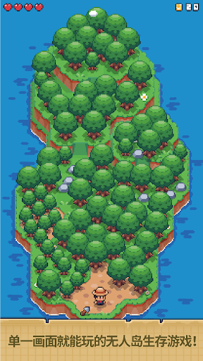 单一画面就能玩的无人岛生存游戏!<br>简单操作,畅快探险!<br><br>■解开小岛的秘密吧<br>船舶漂泊而至的无人岛。<br>远远望去,突然看到有烟雾从森林中升起。<br>“说不定有人生活在这里……”<br>开拓小岛,向森林深处前进,<br>解开隐藏在这里的秘密吧。<br><br>■无需复杂的操作<br>单一游戏画面,所以不可能迷路,<br>也不需要麻烦的移动。<br>向森林深处前进,这样就对了。<br><br>■简约但不简单的沉浸要素<br>收集素材,以备迎接生存挑战。<br>升级武器和道具,<br>增强自己的体力(红心)吧<br><br>☆在碎片时间游玩赶走无聊<br>☆单一游戏画面掌控全局<br>☆细腻可动的萌化像素画面<br>☆简约但不简单的沉浸要素