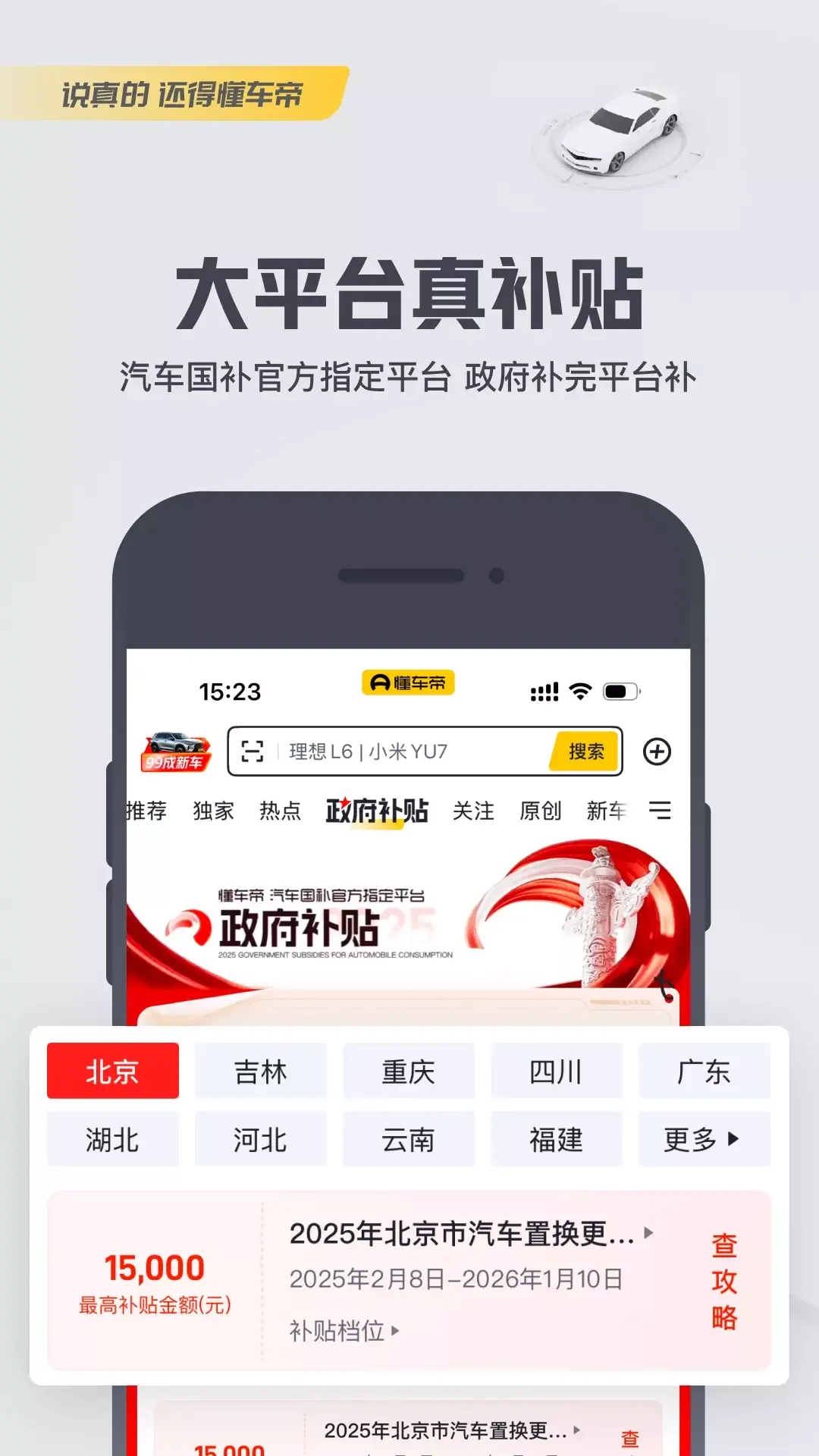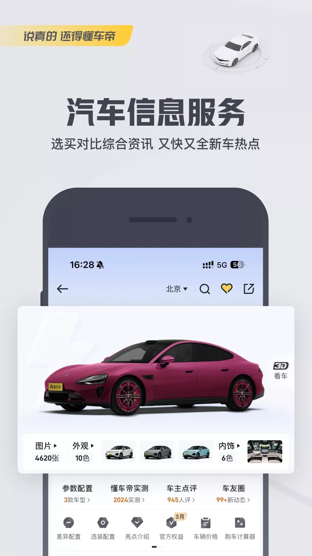 懂车帝 - 值得信赖的新车二手车选买平台 为你实时更新丰富有趣的汽车资讯,提供真实车主口碑与价格,更有便捷实用的选车工具,充分满足你对汽车APP的期待;累计用户超过5亿。 --6大亮点,诚意满满-- 【真实】百万真实车主,分享“车主成交价、真实车主口碑”,让你买车不吃亏! 【专业】云集专业汽车测评人的真实体验的懂车分,平台打造专业客观的原创内容,为你深入浅出地展现爱车每一面。 【有趣】丰富的“直播、小视频”内容体验;创新的“3D看车、拍照识车”等丰富有趣的内容和功能,让你告别枯燥,开心选车。 【政府补贴】2025年懂车帝成为商务部及多省商务部门汽车以旧换新服务平台,为31省用户提供汽车置换更新、报废更新领取和查询服务。 【优惠】多样的平台优惠活动,特价车、直播优惠券等,福利满满,让你买车更优惠! 【实用】超细致的参数配置、视频说明书、专业评测、选车pk等实用功能,在家也能轻松选车