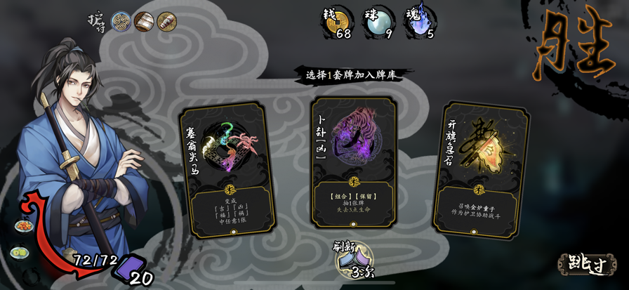 《古今2-风起蓬莱》是一款国风卡牌构筑游戏。玩家将扮演一名身世特殊的少年,游历四方,习得百种武学,收集神兵利器,结识天下武侠,终成为一代大侠。 【特色玩法】 卡牌构筑:数百张武学卡牌,数十种流派,自由构筑。 神兵利器:数十柄神兵利器,随心搭配。 武侠同伴:结识数十名侠客,并肩而行。 角色扮演:行侠仗义,奇遇冒险,武侠剧情跌宕起伏。 机关解谜:探索世界,机关谜题层出不穷。 奇特幻境:Roguelike场景,步步惊心。 国风彩绘:原创美术风格,绘出心中江湖。 【故事背景】 曾有蓬莱仙岛, 浮于高空不落, 受万流景仰。 所谓飞升成仙, 便是飞去那蓬莱仙岛, 求个立足之地。 然而仙人亦有争斗, 天降浩劫, 蓬莱岛陨落人间。 失去仙人震慑, 地下鬼王卷土重来, 万民涂炭。 今有无畏少年, 神功大成, 欲诛灭鬼王, 救民济世。