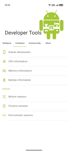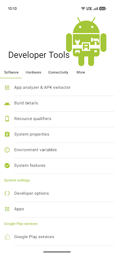 为 Android 开发者和其他对设备感兴趣的用户提供大量实用信息。<br><br>- 提取 APK 文件<br>- 查看应用详情<br>- 查看正在使用的资源限定符<br>- 查看设备版本详情<br>- 查看系统属性和环境变量<br>- 查看可用的系统功能<br><br>- 直接进入设备的开发者选项(也可使用快捷方式)<br>- 直接进入已安装应用列表<br><br>- 查看屏幕尺寸(单位:dp、pt、in、sp、px、mm)<br>- 查看内存 (RAM) 信息<br>- 查看电池信息<br>- 查看传感器数据和信息<br><br>- 查看网络信息(包括公共 IP 地址)<br>- 查看蓝牙信息<br><br>如果您希望此应用包含任何功能,请告诉我。:)