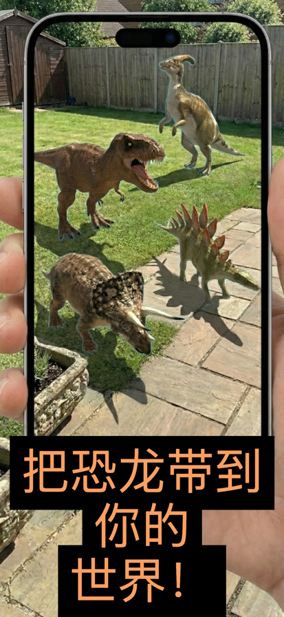 让恐龙在你的世界中活起来!dinosAR使用尖端AR技术,将令人难以置信的逼真3D恐龙直接放置在你的环境中。观看它们行走、呼吸和咆哮,细节惊人。 掌控一切 将恐龙引导到任何你想要的地方。双击触发特殊动作,如咆哮、攻击等。每只恐龙都有独特的动画和行为。 任意大小,任何地点 将恐龙放置在任何平面上,并将它们从微型缩放到真实大小。后院里一只高耸的霸王龙?桌上的迷你三角龙?由你决定。 14种令人惊叹的恐龙 探索不断增长的收藏,包括霸王龙、迅猛龙、棘龙、三角龙、食肉牛龙、腕龙等。从2只免费恐龙开始,一次购买解锁全部14只并移除广告。 创作与分享 内置视频录制功能让你轻松捕捉与恐龙的相遇。直接将精彩时刻分享到你喜爱的应用。 适合恐龙爱好者、教育工作者,以及任何想要以前所未有的方式体验史前生物的人。