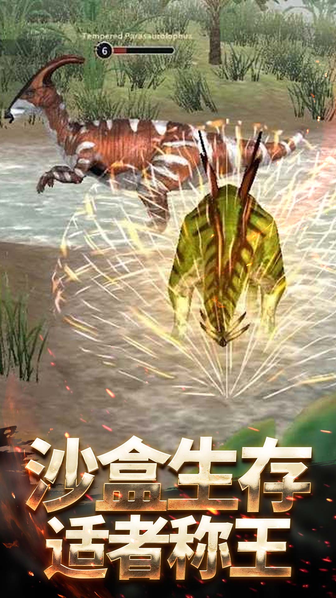 这是一款恐龙开放世界生存游戏,玩家可以在游戏中通过击杀其他恐龙,获取经验和资源,不断的强化升级自己!