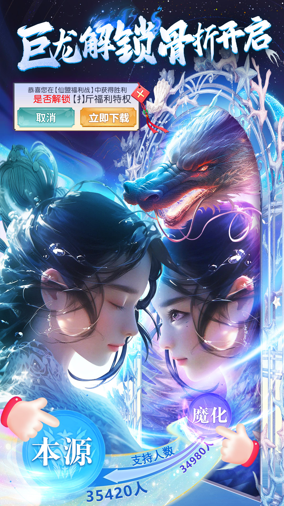 《巨龙猎手》3D修仙大作炸裂来袭!输入必领礼包码【VIP666、VIP777、VIP888】,免费领取海量资源!体验极致打击感,收服神将、培养萌宠、换装飞天,畅游上古大荒!飞天遁地秒变大佬,挂机躺赢爆神装!万人同服激战,上线必得绝版神器!<br><br>【游戏特色】<br>-名门神将 -<br>真实还原上百种上古神将,通过不同任务收服神将,自由搭配神将组合pk,现在还有首充送哪吒敖丙,VIP送朱雀化身!<br><br>-炼化异兽-<br>机缘邂逅上古灵兽,将其化作毕生伙伴。并肩遨游四海,共谱修仙传奇。收服大荒异兽,炼化无上战力!驭使神兽于麾下,纵横三界无人敌。<br><br>-开宗立派-<br>可开宗立派,广纳仙才,执掌你的乾坤!率领宗门问鼎三界,打响不朽圣名,开启热血燃情仙门万人大战!<br><br>-甜蜜家园-<br>缘定三生,不止于心动。共建家园、缔结情缘、共养异兽、同探奇遇,开启你们的平行世界。