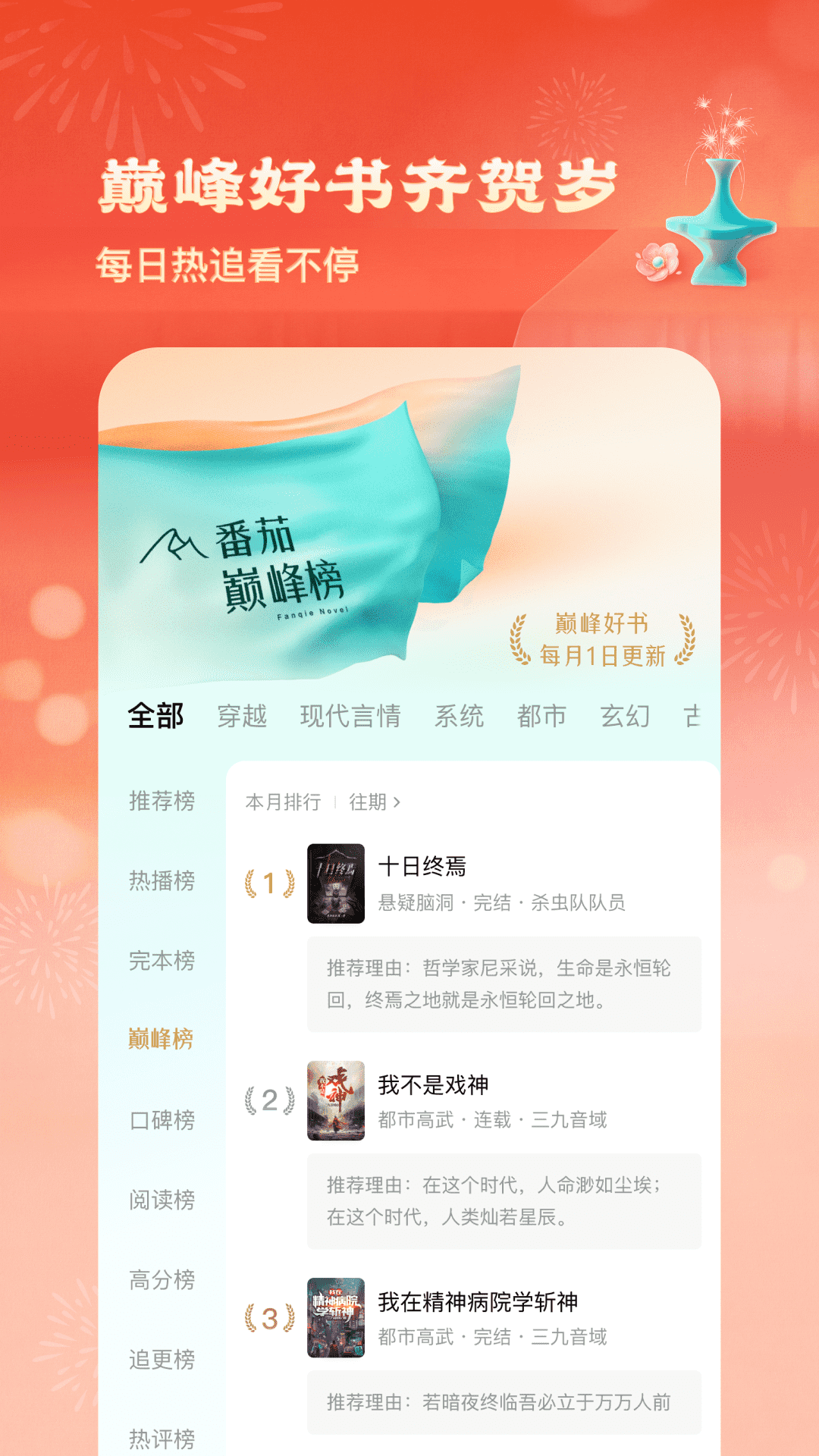 短剧漫剧齐首发,小说更新看不停 还有热门IP、图书周边等更多惊喜 2月7日-2月23日,来番茄新春会场,天天抽好礼! 【抖音旗下】番茄小说是抖音推出的免费阅读产品,提供海量正版小说。免费好书,尽在番茄!还有金币福利,看书能挣钱! 【正版免费】正版小说,免费阅读。热门分类,都市爽文、言情穿越、玄幻修仙、武侠世界……你想看的这里都有。 【海量短剧】拥有海量的短剧资源,包括都市热血、甜宠言情、职场婚恋、逆袭反转、逆天改命等多种类型,满足用户的不同喜好。 【兴趣推荐】根据你的阅读爱好,个性化推荐,优质书单,书城精细化推荐,总有一款打动你! 【活动福利】签到福利,金币福利,阅读福利……各种福利应有尽有,随时提现,只要你每天常来读! 【听书畅读】这里每一本书都能听,让你阅读的时候,眼睛也能随时休息一下。