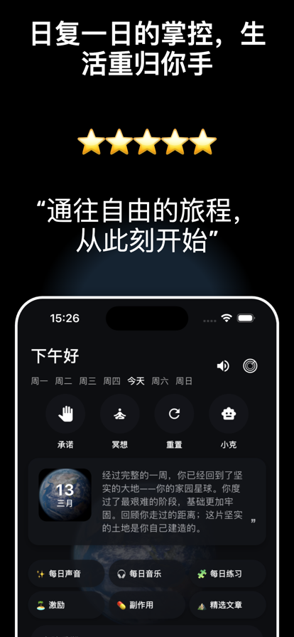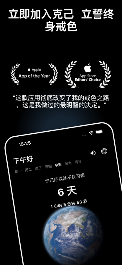 克己 - 戒色自律:一款专业助您戒除不良习惯、重塑自律人生的全方位应用。 核心功能亮点: • 每日习惯追踪 - 可视化记录戒断历程,培养持续自律 • AI智能导师 - 24小时个性化心理辅导与即时支持 • 冥想与自然音疗 - 当欲望来袭时,快速恢复内心平静 • 守护者计划 - 智能屏蔽触发应用与网站,构建纯净环境 • 紧急援助系统 - 关键时刻一键获取专业心理干预 • 戒友社区 - 与万千戒友并肩前行,分享康复经验 • 康复日记 - 记录戒色心路历程,见证自我成长 • 成就系统 - 解锁戒断里程碑,庆祝每一个进步 科学戒色,温暖陪伴 克己融合认知行为疗法与正向心理学,以科学方法为基石,以人性关怀为温度,助您重获生活主导权。无论您正处于戒断初期还是巩固期,我们始终陪伴您的每一步成长。 加入已通过克己成功蜕变的数万戒友行列 让专业工具成为您最可靠的戒色伙伴。从今天开始,踏上通往纯净自由的人生新篇章。