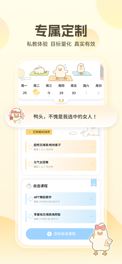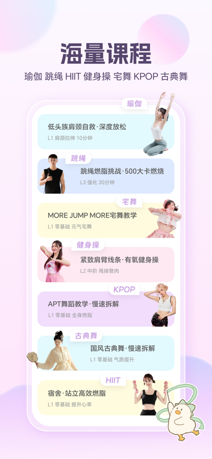 #趣运动,更精彩# 随时随地的移动真人健身教练,练就完美健康身材! 【为什么选择动起来鸭APP】 ●海量运动课程。配备健身操、跳绳、瑜伽、舞蹈等运动课程跟练,标准的动作示范和准确的语言描述带你快速入门,用健康的运动健身生活方式,收获更好更强的自己。 ●量身定制专属计划。管理减肥过程,高效助力减脂计划,定制专属计划方案,记录体重、体脂、维度等多维数据变化,进行健康高效的身材管理。 ●热门减脂食谱推荐。运动和饮食相搭配,实现减脂效果优化。科学规划三餐饮食,保证营养均衡的同时实现减脂掉秤,健康吃瘦不反弹,轻松获得好身材。 ●千万级食物数据库,热量营养一查便知。记录饮食摄入和消耗,提供专业的饮食数据分析,用科学健康的方式助力你减肥的每一步。 ●咕噜咕噜饮水提醒。饮水目标设置,可爱简单的喝水功能,直观的数据统计。健康饮水,健康生活,轻松拿捏每天八杯水,提高代谢加速减肥进程~ ●身材曲线变化。数据页面记录了你的身材变化,体重的下降,维度的变小,良好的喝水习惯的养成。你的努力,鸭鸭帮你记录! 【动起来鸭的课程介绍】 1. 健身操课跟练。真人同步训练,新手小白全程可练,身体各部位全面把控。全程语音督导,自动同步进度完成运动打卡,带给你极好的跟练体验。 2. 跳绳课程全面上线。有绳/无绳课程同步更新,帮你突破减肥平台期。高效的燃脂训练,提高心率,每天15分钟有氧跳绳,见证运动带给你的美好改变。 3. 舒缓瑜伽持续更新。涵盖不同种类的定制瑜伽和免费课程,拉伸瑜伽,流瑜伽,燃脂瑜伽等持续上线!瑜伽配猫猫,温馨的跟练画风,打破传统风格,带给你非凡的运动体验~ 4. KPOP健身happy燃脂舞上新。热门女团BLACKPINK,(G)I-DLE,IVE减脂舞随你选,SEVENTEEN,EXO男团跟练持续更新中~跟着动感的音乐动起来鸭! 【小组件】 个性化组件不仅能装饰你的手机桌面,还可以提醒你的跟练状态,食物摄入等。 【免责声明】 《动起来鸭》所提供的运动方案仅供参考,用户若患有疾病、长期服药或其他可能会影响健康方案执行的,应当根据自身的健康状况自行评估,必要时需在医生或其他医务人员的指导下进行。动起来鸭提供的任何方案,均不能代替医生和其他医务人员的诊断和建议,动起来鸭也不会提供任何医疗诊断或医疗建议,用户应当理性对待,若用户对其自身健康状况评估错误或对动起来鸭的方案判断错误的,应当自行承担相应的后果,动起来鸭不对用户作任何类型的担保,也不承担任何责任。 动起来鸭所提供的饮食和减重方案仅供参考,用户使用前应根据自身的健康状况自行评估,必要时请咨询专业医生和医务人员的建议和指导,理性使用产品中提供的一切内容,对自身身体状况负责。 动起来鸭App仅提供管理工具,体重管理的效果受多重因素影响,需理性使用和看待。 动起来鸭会员自动订阅说明 *会员套餐:动起来鸭月会员,订阅价格:78元/月 全部会员功能 *会员套餐:动起来鸭年会员,订阅价格:158元/年 全部会员功能 *会员套餐:动起来鸭终身会员,价格:198元 全部会员功能 会员权益:订阅期间可享受套餐内对应服务功能。 *付款:用户确认购买并付款后计入iTunes账户。 扣款说明苹果iTunes账户会在到期前24小时内扣费扣费成功后订阅周期顺延一个订阅周期 *取消订阅如果需要取消订阅,请打开苹果手机“设置”->进入“iTunes Store与App Store”->点击“AppleID”,选择“查看AppleID”,进入账户“设置”页面,点击“订阅”,选择取消订阅即可。如未在订阅期结束的至少24小时以内取消订阅,下个周期的订阅服务将自动续订。 隐私政策:https://static.venus-health.com/ags/yszc.html 用户协议:https://static.venus-health.com/ags/yhxy.html 会员服务协议:https://static.venus-health.com/ags/hyxy.html 自动续费协议:https://static.venus-health.com/ags/xfxx.html