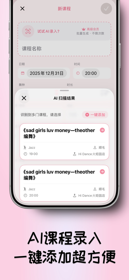 DanceDay 是一款面向舞蹈爱好者的课程记录、复盘与舞蹈视频整理工具,支持 AI 识别课程信息、智能统计趋势,并可自定义模板快速开课。 主要功能: • AI 识别:从照片/相册一键识别课程名称、时间、舞种、老师、地点等。 • 统计与复盘:热力图、周/月/年趋势。 • 模板加速:自定义课程模板,重复课程一键套用。 • 课程管理:记录课程时长、地点、老师、备注、评分,支持多媒体记录。 • 视频关联:关联相册中的舞蹈视频,按日期分类,快捷复盘舞蹈动作与成长变化。 • 会员权益:高级统计多视图、AI 批量识别/无限次数、未来新增高级功能优先体验。 适用人群:舞蹈爱好者、教培机构学员、舞蹈教练等热爱舞蹈的人群。 使用条款(EULA):https://www.apple.com/legal/internet-services/itunes/dev/stdeula/