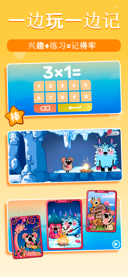 您是否想让学习和练习乘法表变成兴奋大冒险?那么,我们的游戏简直就是为你您量身定做!我们的游戏能在帮助凯利为太空博物馆收集人物角色照片的同时练习乘法表。 主要特点: • 两种游戏模式:10x10和12x12 • 76个独特的游戏关卡被划分为11个不同的情节 • 基于记忆技巧的学习过程:间隔重复以及使用输入和选择任务 • 自适应算法识别出对每个孩子都具有挑战性的乘法运算,并相应地自定义任务 • 解锁主要角色的30件装备和配件,作为促使孩子前进的动力 • 非常适合使用平板电脑 • 儿童友好的界面 乘法大冒险绝对是学习和记住乘法表的好方法! 我们很乐意接受您的反馈。如有任何疑问,请发送电子邮件至timesapp@speedymind.net 服务条件:https://speedymind.net/terms 隐私政策:https://speedymind.net/privacy-policy