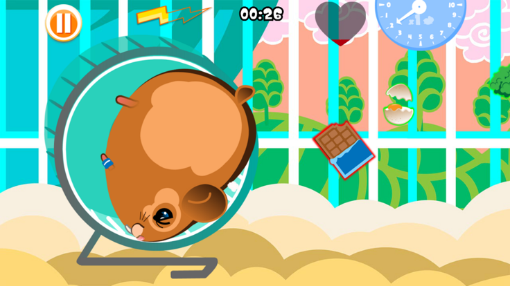 仓鼠先生非常希望成为一个强壮的人。请帮帮他吧! 你的目标是以最快的速度转动轮子,使仓鼠达到游戏要求的速度,并保持该速度10秒钟。 用手指转动轮子,在适当的方向上水平拖动它(在屏幕顶部的右边,或底部的左边) 仓鼠先生需要非常多的能量,从而跑得更快。条形亮纹显示其当前能量水平。 当你增加仓鼠先生的速度,它的能量水平就开始降低。让它吃健康的食物,以增加它的力量。 如果仓鼠先生吃太多不健康的食物,体重将迅速增加,并最终死亡!点击不健康的食物,在其到达仓鼠先生跟前。 为鼓励仓鼠先生跑步,你可以任选以下两种方法。点击屏幕的左侧或 用手指转动轮子,在适当的方向上水平拖动它(在屏幕顶部的右边,或底部的左边。 单击或用手指在仓鼠周围拖动,以增加其速度。