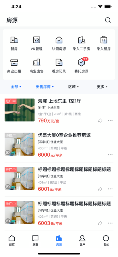 经纪云是房天下搭建的二手房经纪行业SaaS平台。汇聚住宅帮、天下潜客、天下优推等多款口碑产品,为经纪人匹配精准购房者;提供VR、直播、抖房等多种营销工具帮助经纪人扩建私域流量;提供房源管理、客源管理、数据管理、营销推广、交易流程管理等在内的一站式解决方案;构建操作便捷、管理智能、全效成交的全生态网络经纪服务平台。 主要产品介绍 1)住宅帮:为经纪人提供全业态的房源发布系统、全方位的大数据市场统计以及数据监控 。 2)天下潜客:基于对房天下近亿用户海量找房行为的智能分析,为经纪人精准匹配并推送符合其需求的客户。精准、智能地整合房天下房源、客源信息,提高经纪人与购房者的沟通效率,有效降低获客成本。 3)天下优推:房天下推出的精准营销的利器,优选推广占据前10黄金位置,凭借海量流量和优质找房用户,让推广得到更多的客户。按点击付费,性价比高。 4)租房帮:可推广租房房源,不限物业类型;一次推广,房天下网站三端展示,移动端优先展示;房源按照质量权重排列,高质量房源获得更高曝光率。