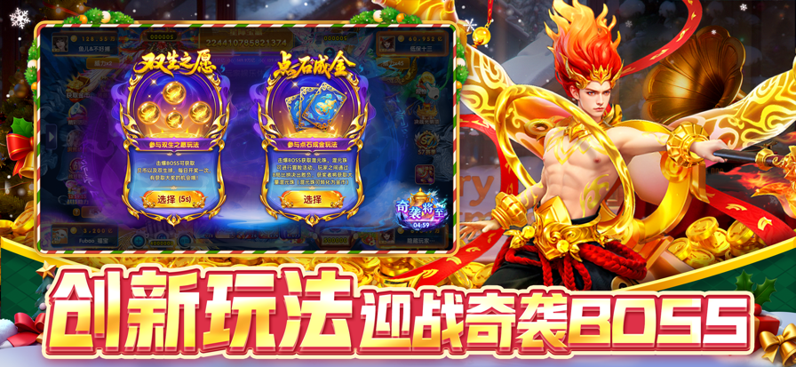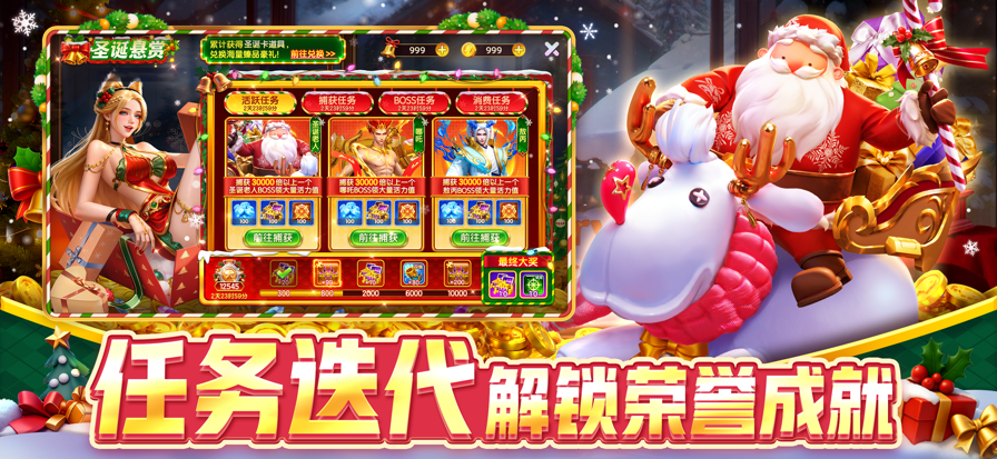 《指尖捕鱼》庆圣诞迎元旦!冰雪盛宴,闪耀新年,双旦版本携多重惊喜火爆上线!画面质感、操作体验、福利系统全面优化,带你邂逅冰火交织的捕鱼狂欢! 【双旦庆典,限时狂欢】 节日盛宴不间断!每日登陆有多重累计奖励,陪你温暖跨年! 【炮翅焕新,倍率爆增】 全新限定炮翅,属性全面升级,捕鱼倍率大幅提升,装备焕新不容错过! 【奇袭BOSS,经典对决】 奇袭boss创新玩法,迎接挑战,赢取专属神器与稀有道具! 【福利畅购,礼包海量】 双旦特惠商城限时开启!超值礼包、限定套装、特效炮台,助力征战无忧! 《指尖捕鱼》双旦特别版本,更多创新玩法、惊喜活动持续更新!即刻下载登录,携手战友,共赴星辰大海!