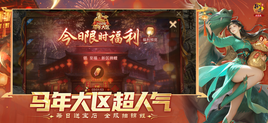 【燃战新春 马上来财】 2026 神驹开路,轻松拿捏福利年!马年春节版本隆重登场,带来职业重磅换新、巅峰争霸赛事;更有马年限定神宠,“来财”系列时装等你来拿! 【翎箭焕新 制霸战场】 翎箭职业重磅焕新,流血制霸战场。爆发、持续、群伤、机动四重提升,助你成为战场新一代制霸王者! 【英雄聚首 巅峰对决】 巅峰争霸赛事:乱武大会、雄霸天下、君临天下、巅峰家族战轮番燃战,全维度淬炼实力,考验团队默契! 【奢华限定 八方来财】 马年限定神宠・神圣彩虹马,在战斗中提供强大增伤效果和减伤效果,简直就是战场上神级的收割利器。“来财”系列时装直接把豪门气场拉满,贵气溢出屏幕。奢华底蕴与端庄优雅的完美结合,东南西北發,你就是行走的八方来财! 【以一顶三 新春大减负】 三次任务,一次完成,可一次拉出多个镖车/商队。搬砖刺探在交付任务时,可一次领取多份奖励。 如果你喜欢我们的游戏 欢迎登陆游戏官方网站:zt2m.ztgame.com 微信公众号:zhengtu2m