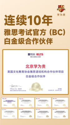 学为贵教育连续10年荣获雅思考试官方授予的白金级合作伙伴荣誉称号,拥有独创的雅思真经教学体系GETS,雅思教父刘洪波、雅思王王陆等众多教学经验丰富的老师都在这里。 学为贵雅思,提供实用的雅思真经课程及雅思听力、雅思口语、雅思写作、雅思阅读训练服务。 主要功能: 【大咖课堂】 0元大咖课-大咖讲堂,雅思听说读写互动答疑。 【口语预测】 雅思口语话题预测及题库,雅思考试的真实回忆,助你了解雅思考试近期趋势。 【单词掌贵】 学为贵真经理论单词记忆法,有雅思阅读538考点词真经、雅思听力179考点词真经、雅思口语亮点词汇、雅思写作词汇搭配;还有雅思单词游戏,能边玩边背单词。 【雅思语料库】 雅思王陆经典应试策略,覆盖最近的考点回忆。 【真题解析】 雅思真题解析,深刻揭露考生不知不觉被扣分的细微陷阱。 如果你想提升雅思成绩,无字幕看美剧,获得外企工作机会,或者搭讪外国朋友,风里雨里,学为贵雅思在这等你~ 郑重承诺:学为贵雅思不对学前儿童直接提供服务、不向中小学生提供校外学科类培训服务,不为违规学科培训提供便利及服务。