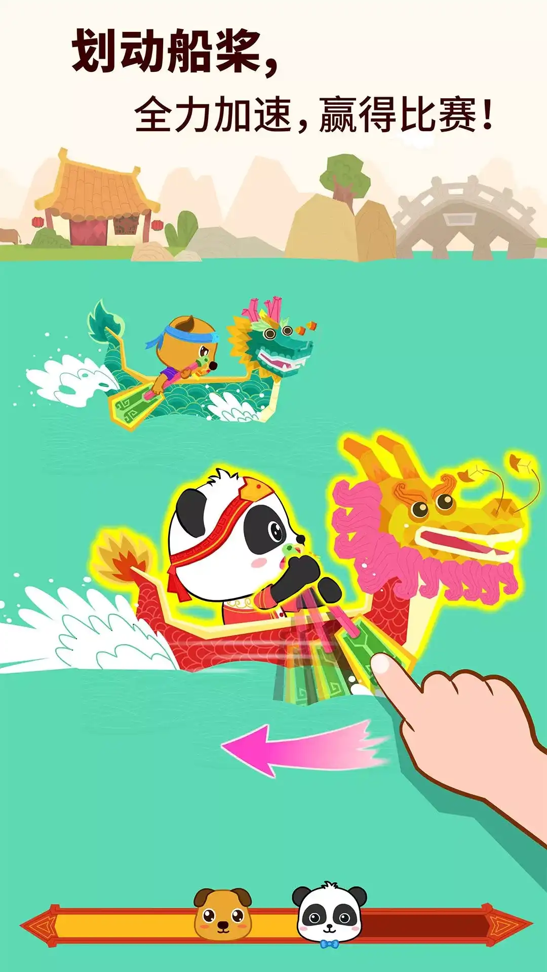 你知道端午节的由来吗?年糕是怎么做的呢?快来【中华节日】边玩边找答案吧! 和妙妙一起学做年糕、帮助奇奇赢得龙舟比赛,给兔一一送月饼···更多节日惊喜等你来发现; 超有趣的节日小游戏,边玩边学,开启宝宝的传统文化启蒙! 产品内容: 【特色美食】年糕、汤圆、粽子、月饼···不同节日,就要品尝不同的特色美食; 【节日游戏】开动脑筋,解开所有灯谜;手指划一划,龙舟游得更快啦!缤纷节日小游戏,等你来玩; 【中华造纸】把竹篮里的竹子、木头拿到河里清洗干净,开始为制作纸张做准备吧; 【趣味动画】谁偷走了兔一一包的粽子?一起去《宝宝巴士之奇妙节日》寻找答案吧! 产品特点: 内容全面,让宝宝了解更多传统习俗; 操作简单,提高宝宝的模仿和动手能力; 画面精美,带给宝宝优质的视觉体验。 宝宝巴士以孩子的兴趣启蒙为出发点,从健康、语言、社会、科学、艺术五大领域关注幼儿成长,吸取蒙氏教育精髓,根据幼儿不同年龄段左右脑发育、敏感期特点和学习重点来设计产品,打造“年龄+能力”的多元化产品体系。让孩子在游戏中独立思考,自由学习,享受探索世界的乐趣。 _________ 设计理念: 宝宝巴士(BabyBus),专注启蒙,而不仅仅是教育。 我们专注于启发,而不只是学习。 我们专注于能力培养,而不只是单一认知。 我们专注于寓教于乐,而不是填鸭式教学。 宝宝巴士,快乐启蒙!全球3.5亿家庭用户的早教选择,您身边的幼儿教育专家! 在宝宝巴士,我们自己也身为父母,所以非常重视儿童的健康和隐私。下载应用前,您可以从这里阅读我们的隐私政策:http://cn.babybus.com/index/privacyPolicy.shtml _________ 欢迎联系: 微信:宝宝巴士 微博:@宝宝巴士 官网:http://www.babybus.com 邮箱:cn@babybus.com