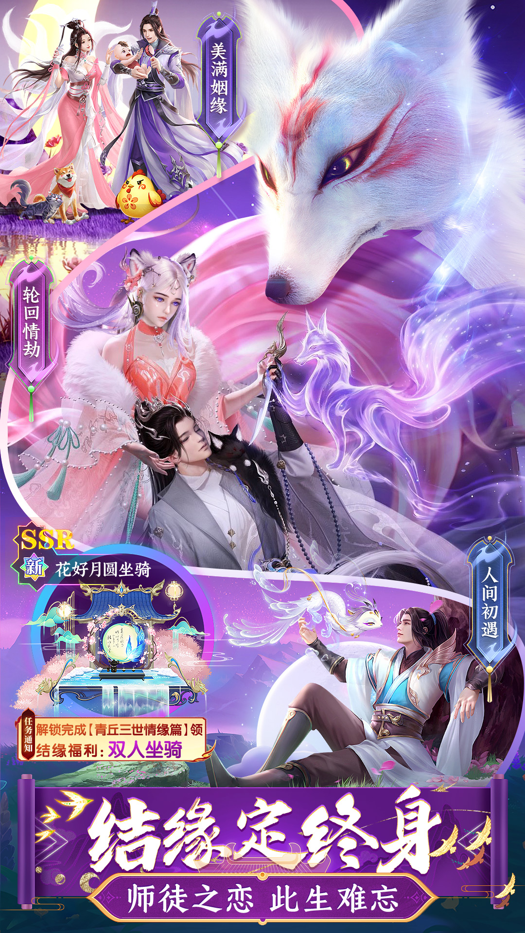 执剑入仙域,携仙侣相伴《上古情歌》闯九州自由修仙! 三世情缘 仙侣相伴,独有仙缘系统,仙剑奇缘,再现仙侠缠绵爱情!姻缘系统,全服发放婚宴请帖,让世界见证你的爱情,共同孕育超萌仙娃,亲密值越高权限越宽越好玩!快来体验一场成长、取舍的纯爱虐恋的故事!