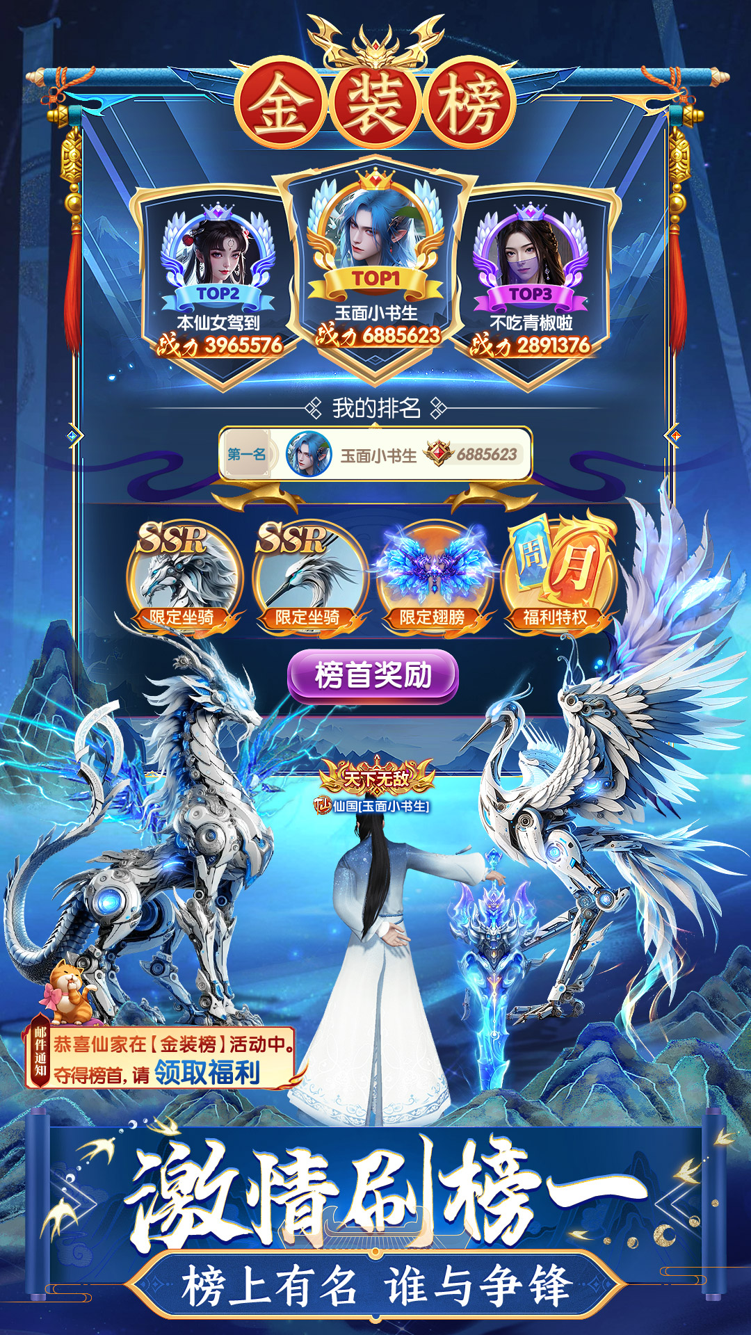 别再看那些复杂到脑仁疼的攻略了!《御剑仙缘》为你开启【一键爽飞】模式! 1s 上手:技能全靠甩,操作无门槛!上来就开干! 3s 上头:刀刀暴击,满屏光柱!神宠、仙翼、炫酷时装,爆率直接拉满,爽感停不下来! 5s 开秀:跨服 PVP、万人同图抢神装!今天你还是新手,明天就能当盟主,上演逆天复仇!