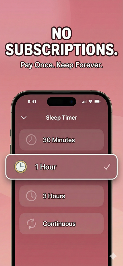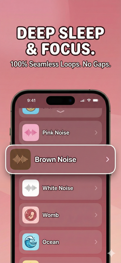 16种安睡声音与摇篮曲,帮助宝宝快速安静。买断一次,广告为零,可离线,循环无缝。 你将获得 - 安抚宝宝的噪音:白噪音、粉噪音、棕噪音、胎内音、雨声、海浪、风扇、嘘声。 - 专为安抚设计的摇篮曲。 - 无缝循环播放,无间隙。 - 一键收藏,快速播放。 - 轻柔睡眠定时器与淡出。 - 一次解锁全部声音、循环播放与定时器。