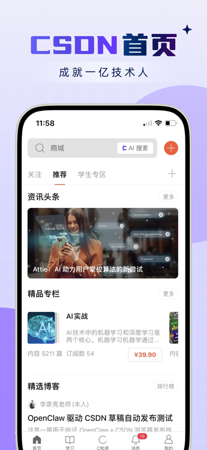 CSDN——专业技术平台,成就一亿技术人。下载CSDN,您会享有全网最全代码资源、专业培训课程、一对一精品回答、最新行业资讯。 CSDN——程序员必备编程交流学习平台!现已接入DeepSeek R1满血版_AI搜索,解决程序员工作学习中遇到的问题,所有技术疑问都能在CSDN找到可被信赖的解答。汇聚各类技术领域专家及大牛专业解答,最新的技术开发信息解决方案和编程学习教程。 适用人群:互联网公司人士、极客、程序猿、白领、设计师、零基础编程爱好者、大学生; 主要技术方向: 【前端开发】HTML、CSS、JavaScript、 jQuery、WebApp、Node.js、Angular JS、Vue.js、Bootstrap、前端工具 【后端开发】PHP、Java、Linux、rust、Python、C、 C++、Go、C#、数据结构 【人工智能】机器学习、深度学习、计算机视觉、自然语言 【移动开发】iOS、Unity3D、Cocos2d-X 【数据处理】MysQL、MongoDB、云计算、 Oracle、大数据、SQL Server 【图像处理】Photoshop、Maya、Premiere、 ZBrush 【工具资源】Git,GitHub,VS Code, Sublime Text 「自动订阅会员说明」 1、服务名称:CSDN VIP连续包月 (1个月) 2、价格:CSDN VIP连续包月产品为88元/月 3、购买自动订阅会员的账号,会在每个月订阅期到期前24小时,从您的iTunes账户中扣费,扣费成功后顺延一个订阅周期。 4、关闭服务:您可以在苹果手机“设置”-->进入“iTunes Store与App Store"-->点击“Apple ID”,选择"查看Apple ID",进入“账户设置"页面,点击“订阅"管理自动订阅服务,如需取消,每个计费周期结束前24小时关闭即可,到期前24小时内则不再扣费。 5、服务协议: 「CSDN自动订阅服务协议」 https://blog.csdn.net/blogdevteam/article/details/118223688 「CSDN会员服务协议」 https://blog.csdn.net/blogdevteam/article/details/118223688 CSDN,致力于为中国软件开发者提供知识传播、在线学习、职业发展等全生命周期服务,并不断完善在移动端的学习体验,欢迎大家体验,提出宝贵意见~