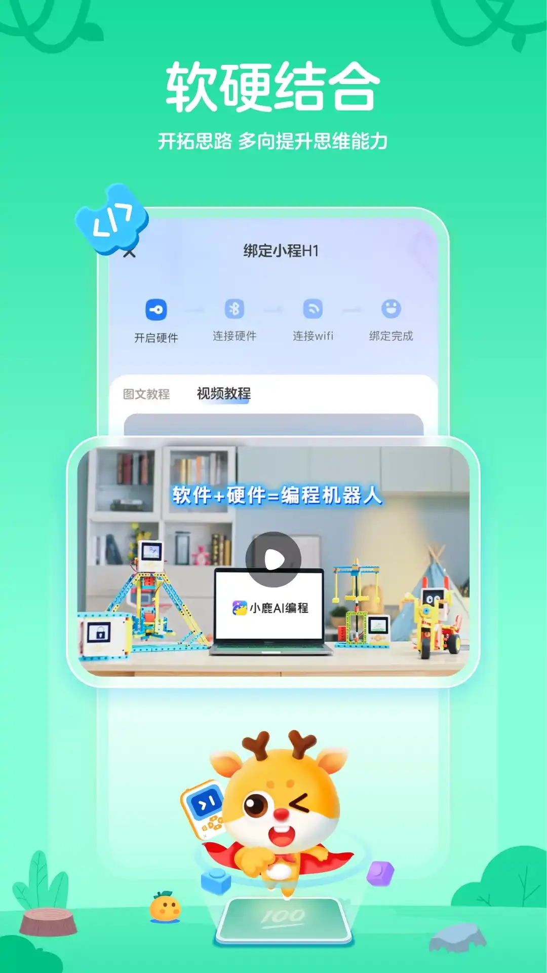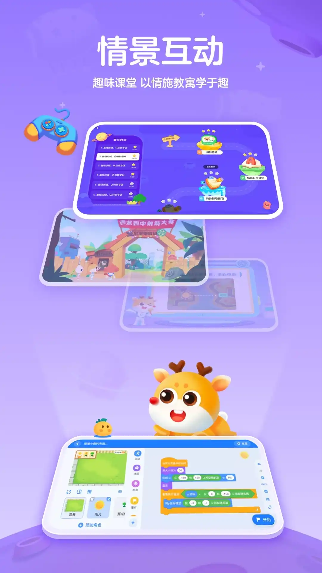 《迷你编程》是《迷你世界》官方自研3D图形化编程学习平台,拥有多种趣味学习方式,超低门槛,会搭积木就能编程,快来打造自己想象中的3D世界吧! 【迷你编程可以学什么】 1.学做地图、海量模板,秒懂开发者必备基础知识 2.利用编程,进行一键模型搭建,如:3D建筑、人物、动植物等 3.学会各种游戏的创作:跑酷游戏、射击游戏、虚拟经营游戏等 【迷你编程的特色】 1.学做地图:迷你世界热门地图的保姆级课程,让你轻松上手迷你世界高端玩法 2.闯关挑战:精心设计的新手引导和关卡剧情,让游戏成为有效的学习工具 3.自由创作:同款改编或是即兴创作,尽情释放你的创造力吧 4.作品工坊:将你的创意分享给迷你玩家, 收获人气晋升大神,成为同学中的地图王者 玩游戏学做地图——从迷你编程开始! 【加入迷你编程创造营】 创造师QQ交流群:1007664340 迷小鹿QQ:2230805055